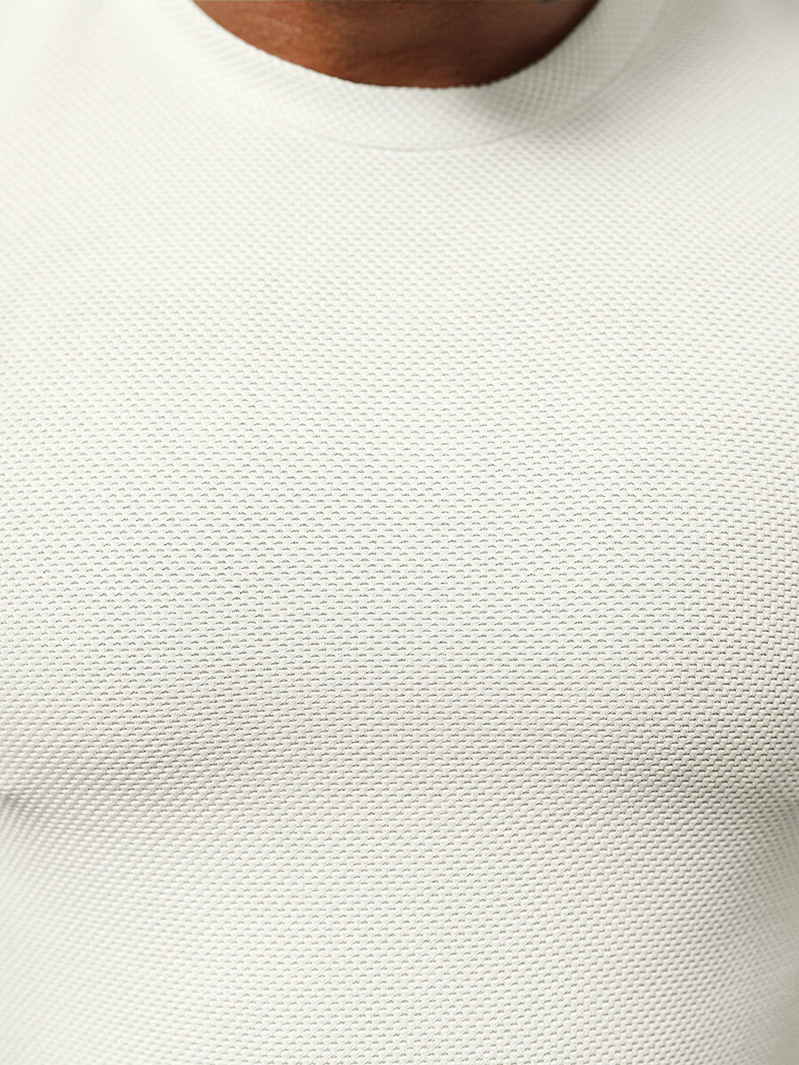 Koszulka pochodzi z naszej najnowszej kolekcji. Ma klasyczny, okrągły dekolt typu U-neck i basicowy fason pozbawiony nadruków czy elementów ozdobnych. T-shirt został wyprodukowany z wysokiej jakości poliestru z dodatkiem elastanu, co sprawia, że ładnie układa się na ciele, nie gniecie się, jest odporny na zaplamienia i szybko schnie.