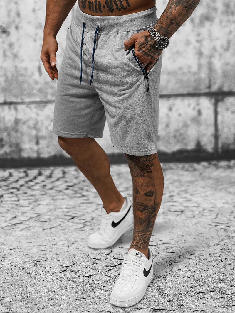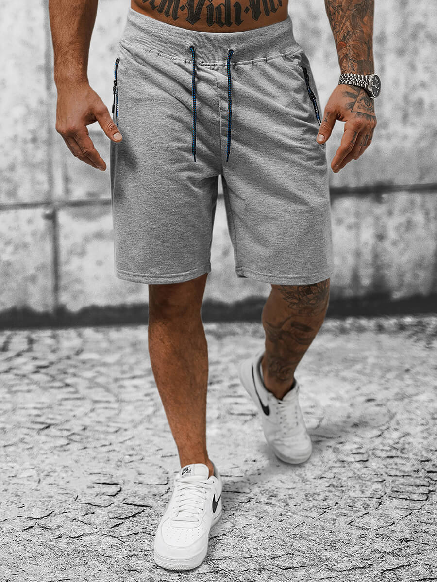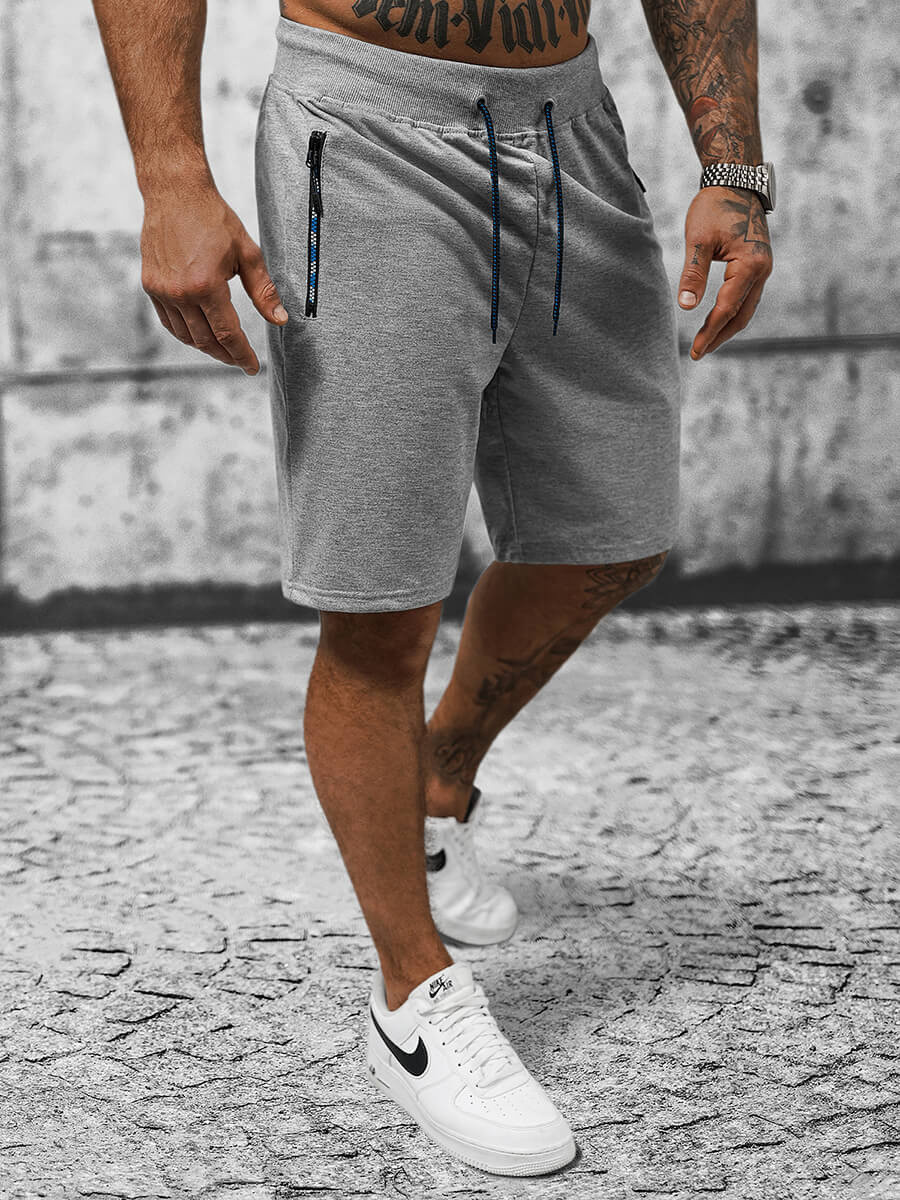 Spodenki pochodzą z naszej najnowszej kolekcji. Mają praktyczny ściągacz w pasie chroniący je przed przekręcaniem się czy zsuwaniem. Po bokach znajdują się kieszenie na zamek błyskawiczny, do których można schować klucze, portfel, telefon czy inne drobne przedmioty. Spodenki zostały wyprodukowane z wysokiej jakości bawełny oraz poliestru, co sprawia, że są wygodne w noszeniu, przyjemne w dotyku, ładnie dopasowują się do sylwetki, nie gniotą się i szybko schną.
