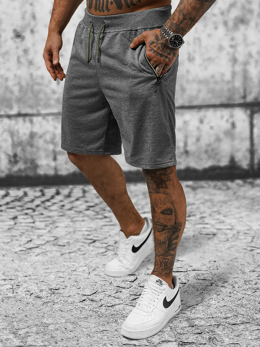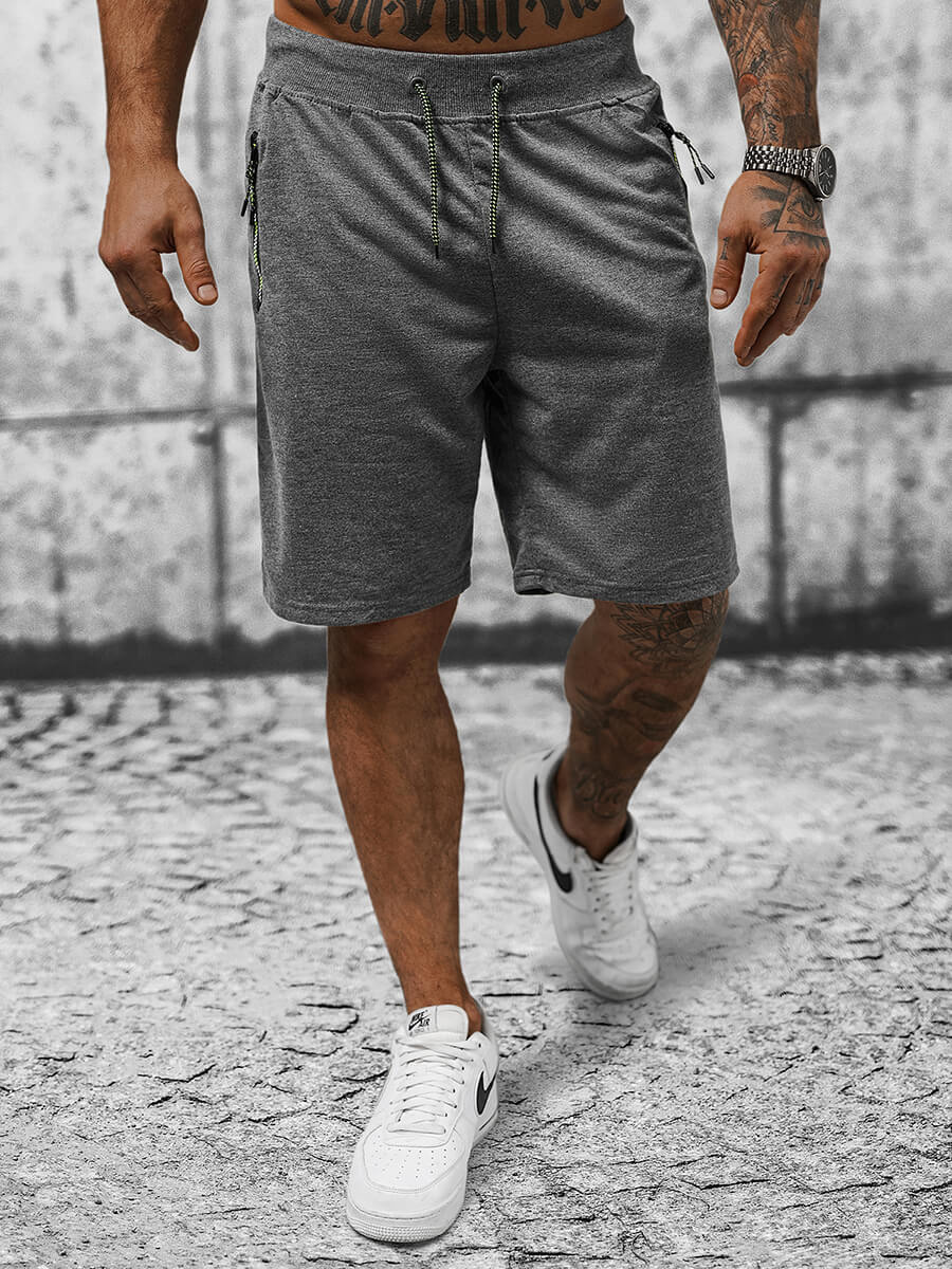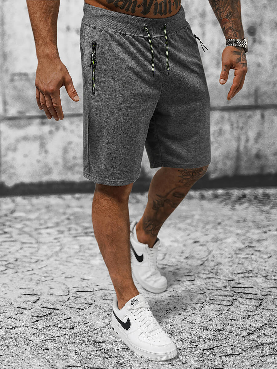 Spodenki pochodzą z naszej najnowszej kolekcji. Mają praktyczny ściągacz w pasie chroniący je przed przekręcaniem się czy zsuwaniem. Po bokach znajdują się kieszenie na zamek błyskawiczny, do których można schować klucze, portfel, telefon czy inne drobne przedmioty. Spodenki zostały wyprodukowane z wysokiej jakości bawełny oraz poliestru, co sprawia, że są wygodne w noszeniu, przyjemne w dotyku, ładnie dopasowują się do sylwetki, nie gniotą się i szybko schną.