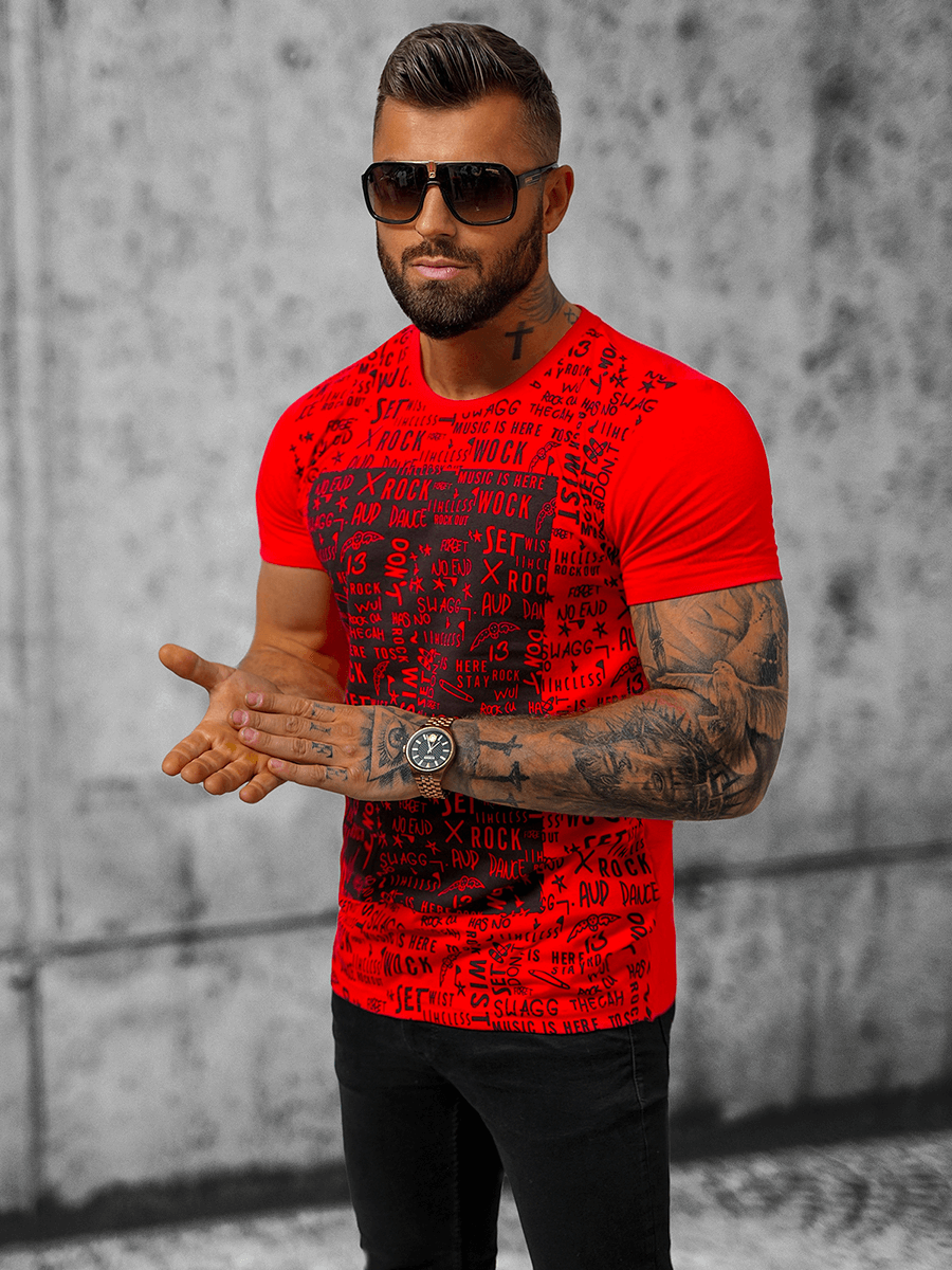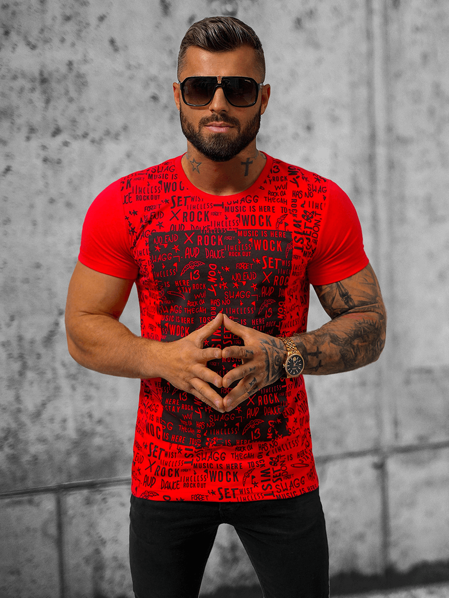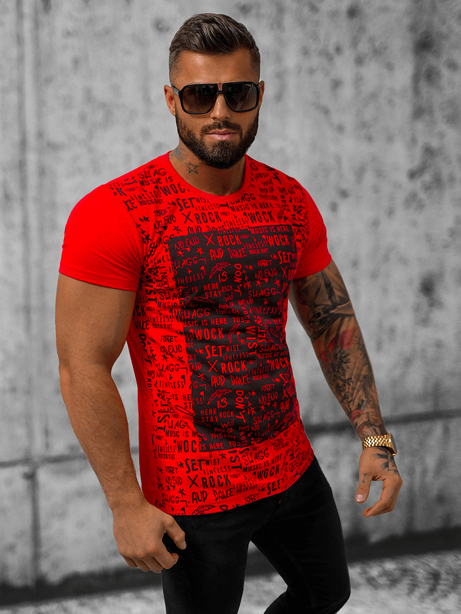T-shirt męski czerwony OZONEE O/T122/18Z