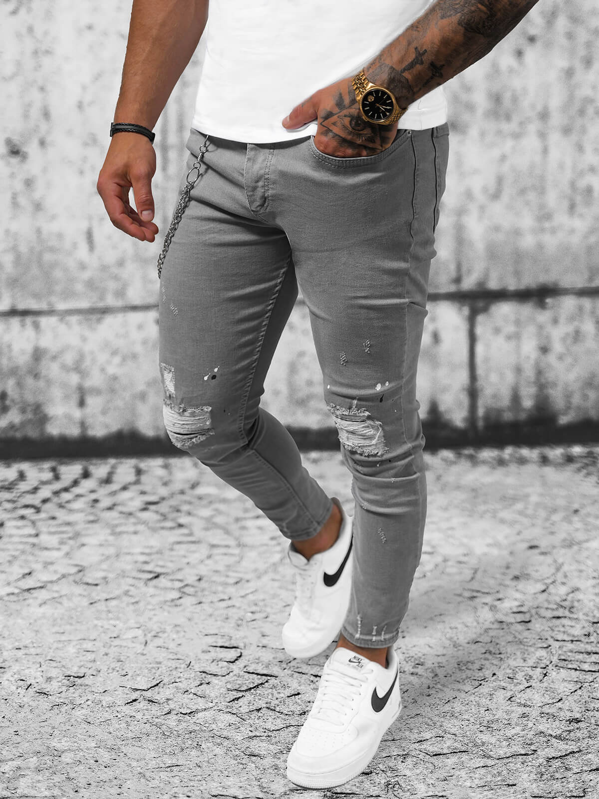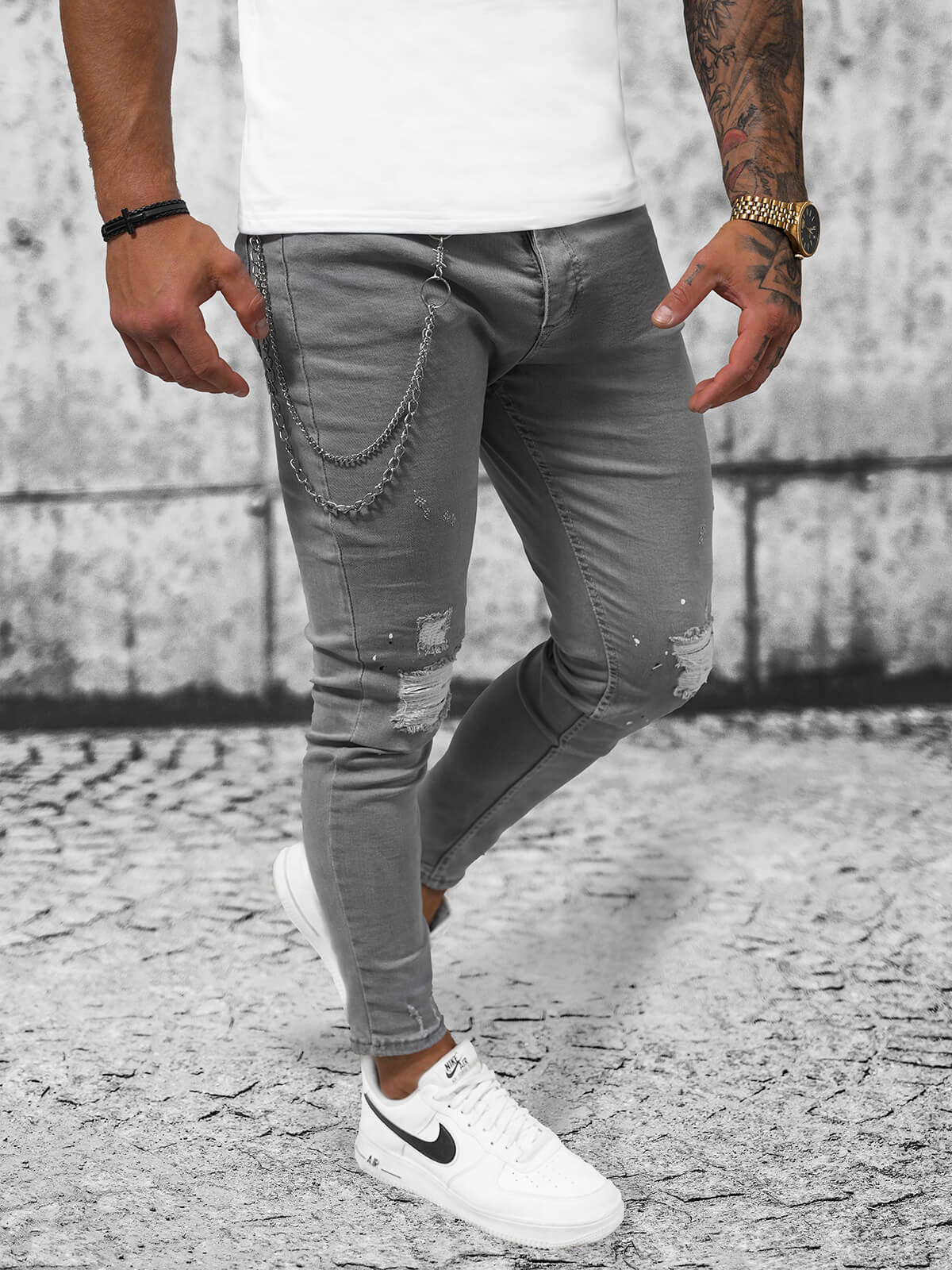 Jeansy slim fit męskie szare Ozonee O/273SP
