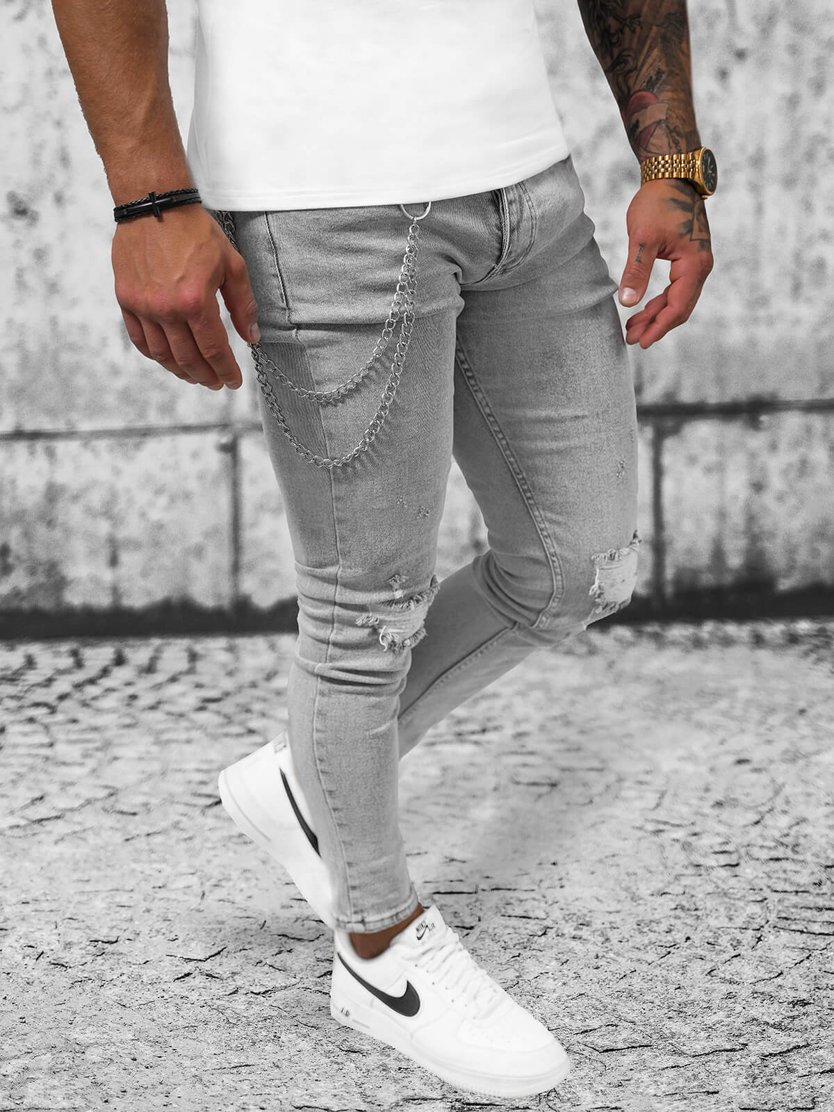 Jeansy slim fit męskie szare Ozonee O/273SP
