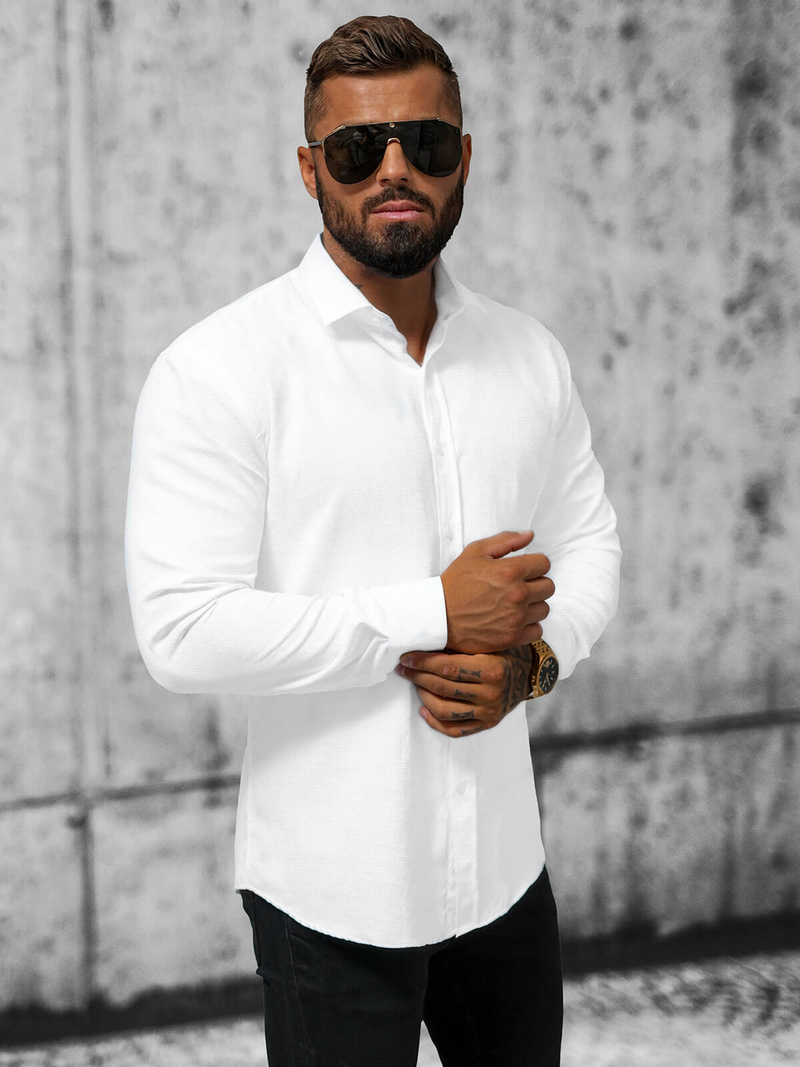 Model prezentujący koszulę ma 182 cm wzrostu, waży 87 kg i ma na sobie rozmiar L. Koszula męska Ozonee O/3778 to świetny wybór dla mężczyzn, którzy chcą połączyć klasyczny styl z komfortem noszenia.