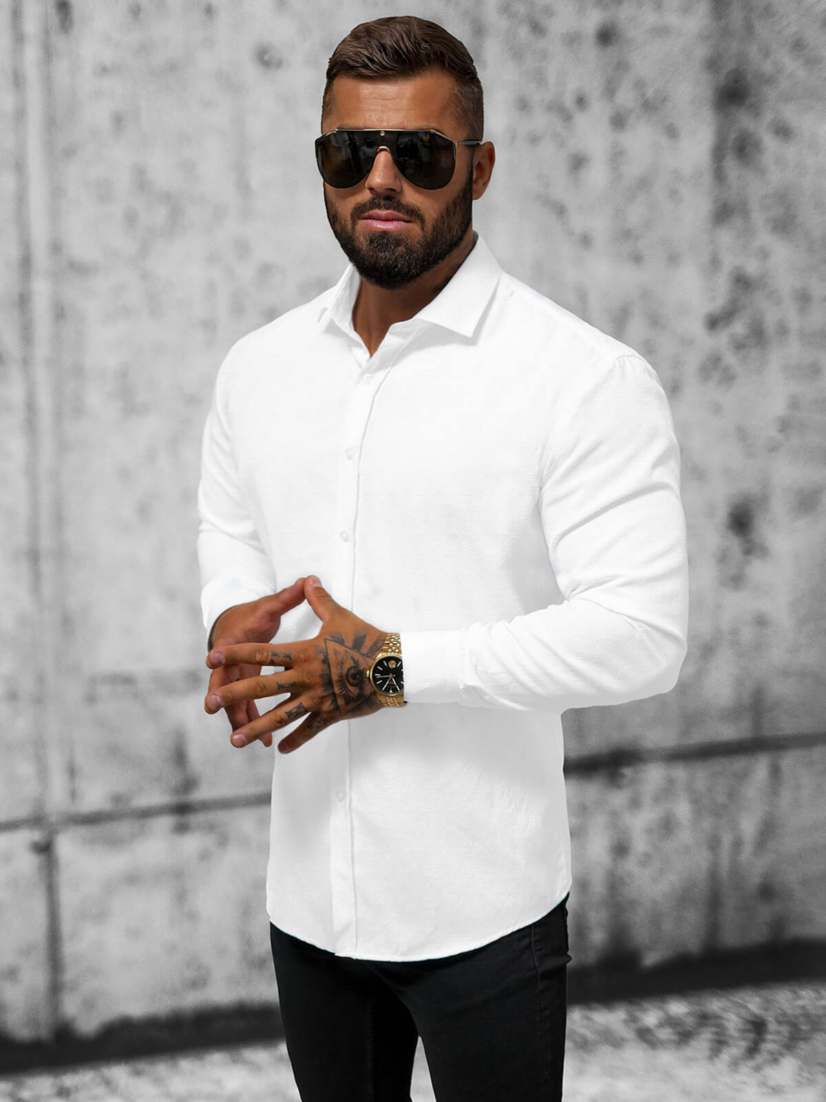 Koszula męska Ozonee O/3778 z najnowszej kolekcji, zapinana na guziki, jest klasycznym wyborem dla każdego mężczyzny. Posiada długi rękaw, klasyczny wzór oraz kołnierz typu Kent, co nadaje jej elegancki wygląd. Materiał składa się z 60% bawełny i 40% poliestru, co zapewnia komfort noszenia i trwałość.
