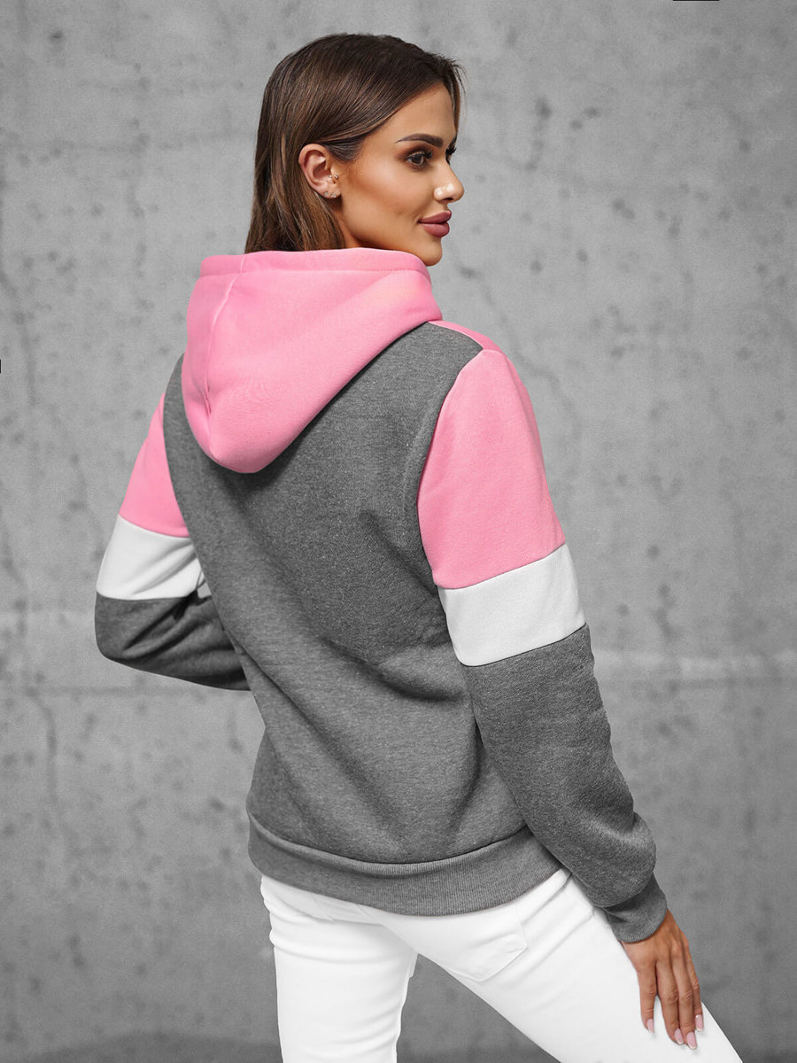 Bluza jest wkładana przez głowę. Posiada kaptur, który świetnie sprawdzać będzie się w wietrzne, deszczowe, chłodne dni. Bluza ma kieszeń typu kangurka. Na dole oraz przy rękawach znajdują się ściągacze, które skutecznie chronią przed jej przesuwaniem się i nadają całości sportowego charakteru. Dzięki kontrastowym łączeniom materiału, bluza prezentuje się niezwykle efektownie. Wykonana została ona z wysokiej jakości bawełny oraz poliestru. Sprawia to, że nie rozciąga się, nie gniecie, ładnie dopasowuje się do sylwetki, jest wygodna w noszeniu i miła w dotyku.