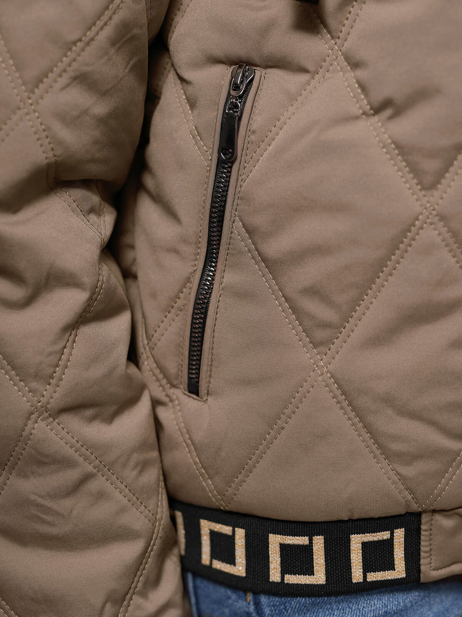 Główne cechy produktu: Odpinany kaptur, modne pikowania, kieszenie po bokach na zamek, dół i rękawy wykończone ściągaczem.