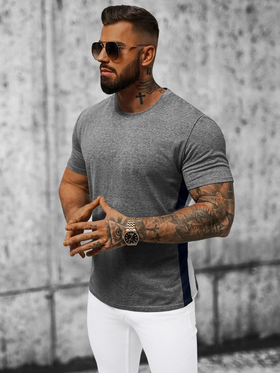Koszulka pochodzi z nowej kolekcji. Ma klasyczny, okrągły dekolt typu U-neck. Oryginalnego wyglądu nadają jej kontrastowe wstawki po bokach. T-shirt został wykonany z wysokiej jakości bawełny oraz poliestru. Sprawia to, że jest wygodny w noszeniu, przyjemny w dotyku, ładnie dopasowuje się do sylwetki i szybko schnie.