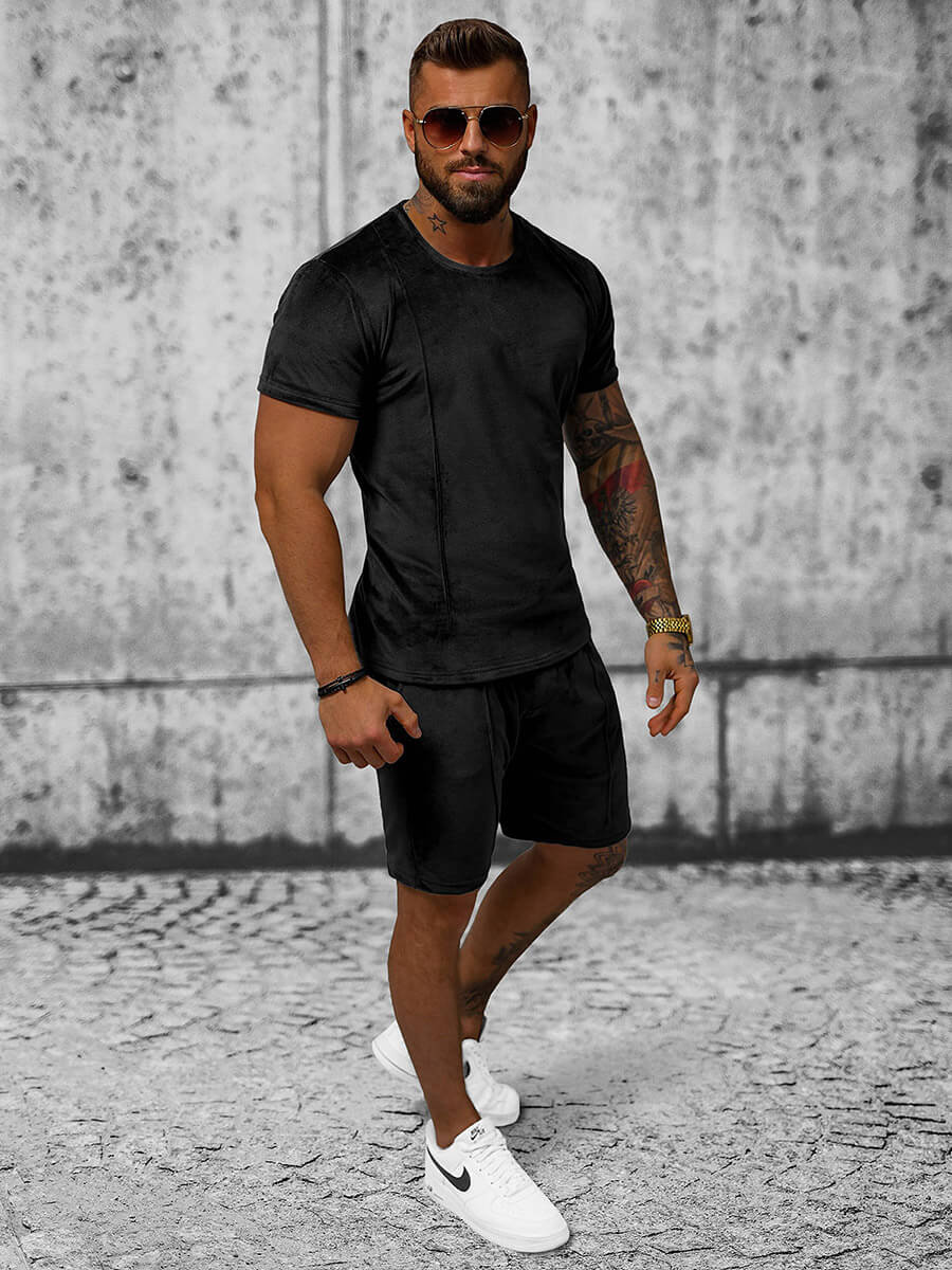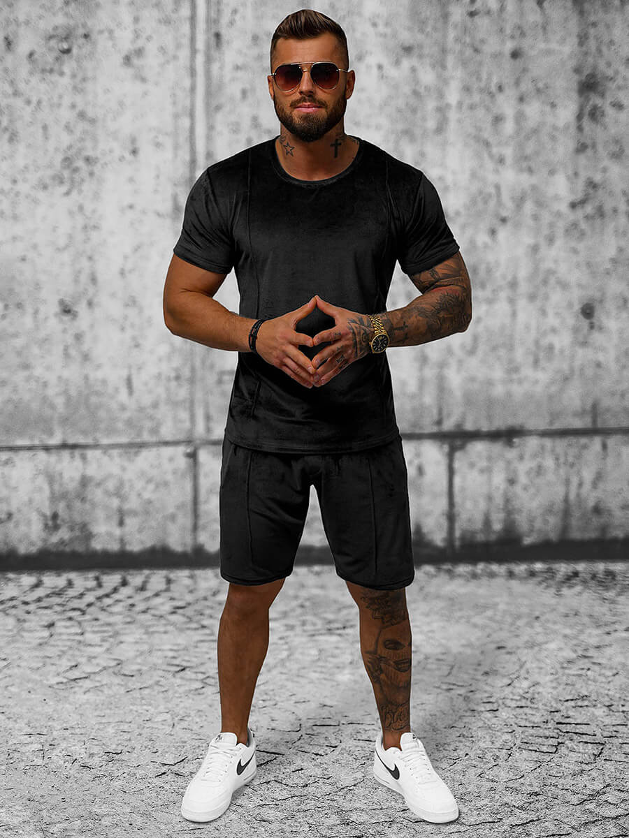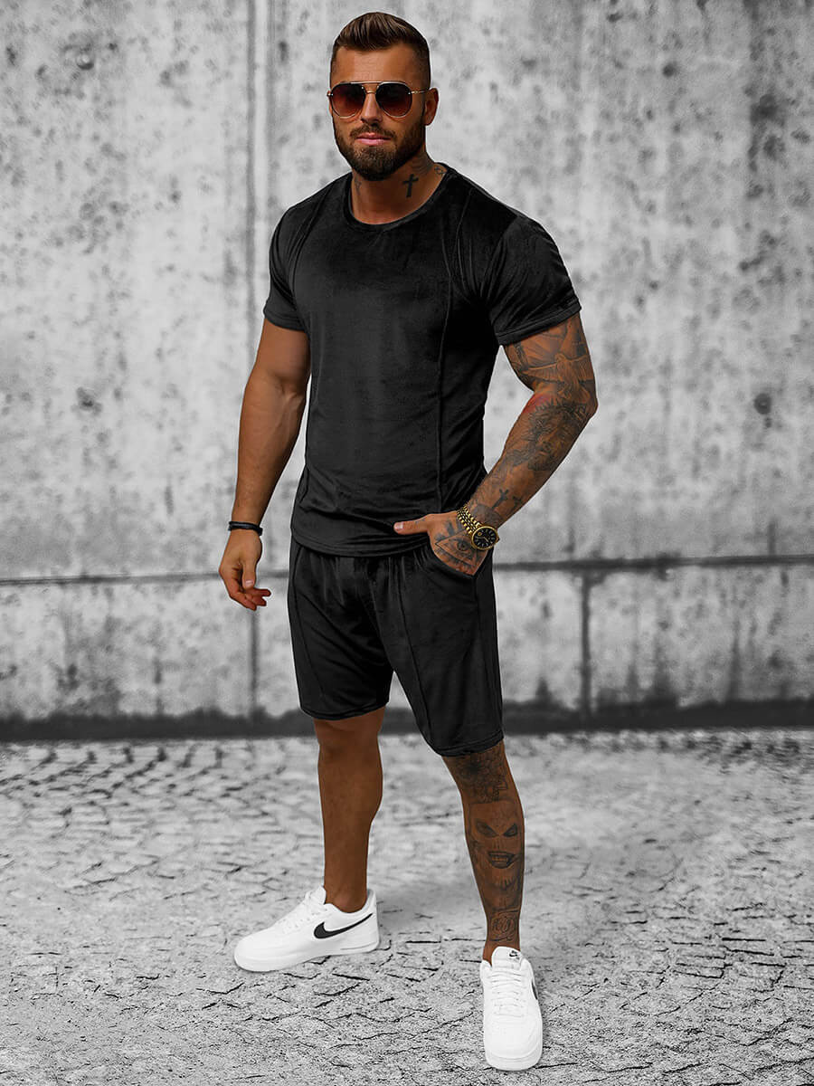 - W SKŁAD WCHODZI KOSZULKA Z KRÓTKIM RĘKAWEM ORAZ SPODENKI Z KIESZENIAMI PO BOKACH