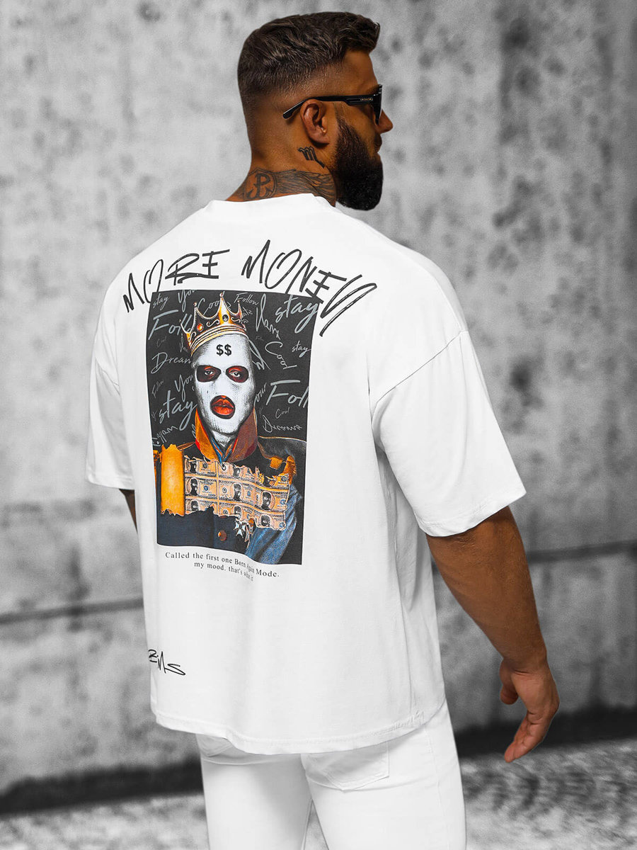 Prezentowany tu T-shirt męski oversize to najnowszy hit z najświeższej kolekcji. Wykonany z komfortowej dzianiny, nie tylko zapewnia wygodę, ale także wyjątkowy styl, dzięki efektownemu nadrukowi na plecach. Świetnie pasuje do różnych okazji i strojów, od codziennych jeansów po eleganckie spodnie. Wybierając ten model, nie tylko wzbogacisz swoją garderobę o modny element, ale też zagwarantujesz sobie wygodę i oryginalny wygląd.