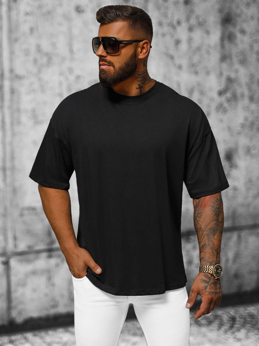 Prezentowany tu T-shirt męski oversize to najnowszy hit z najświeższej kolekcji. Wykonany z komfortowej dzianiny, nie tylko zapewnia wygodę, ale także wyjątkowy styl, dzięki efektownemu nadrukowi na plecach. Świetnie pasuje do różnych okazji i strojów, od codziennych jeansów po eleganckie spodnie. Wybierając ten model, nie tylko wzbogacisz swoją garderobę o modny element, ale też zagwarantujesz sobie wygodę i oryginalny wygląd.