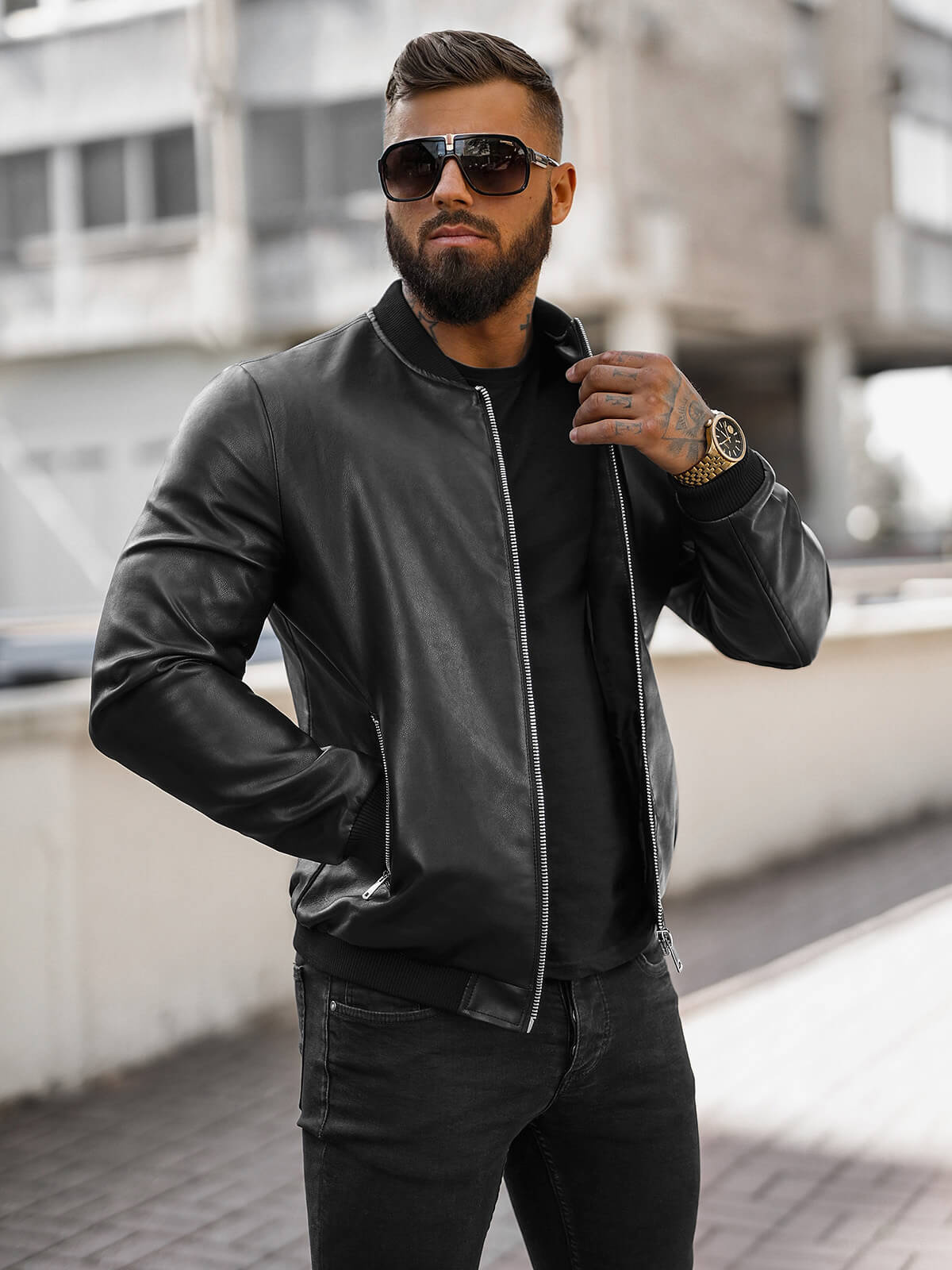 Poczuj wyjątkowy styl z męską kurtką skórzaną typu bomber od OZONEE JS/11Z8106Z!