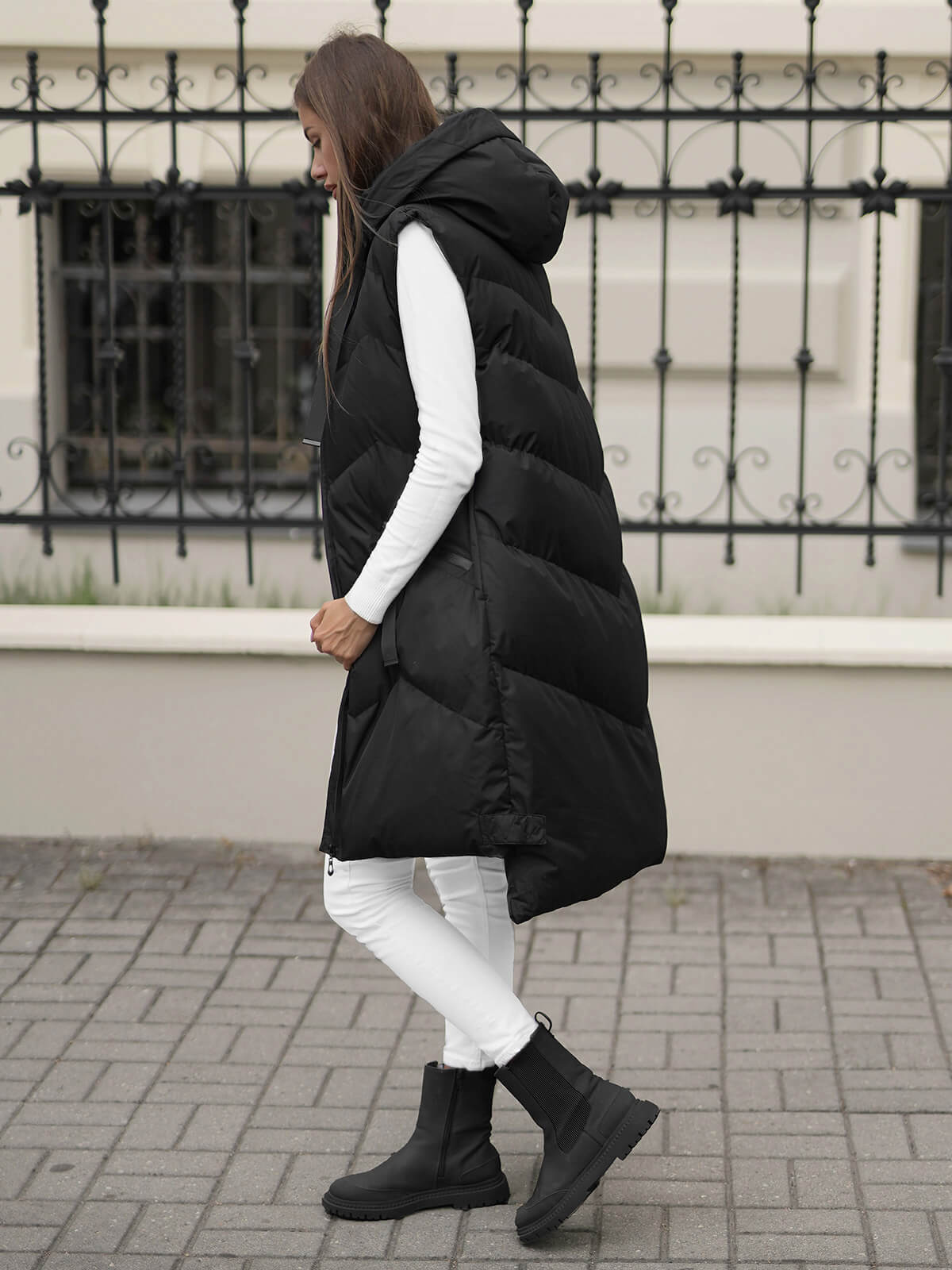Ta długa kamizelka to nie tylko niezbędny element garderoby na chłodne dni - to także wyraz Twojego unikalnego smaku. Doskonała na różne okazje, takie jak wyjście do teatru czy spacer po zimowym parku. Możesz ją łączyć z różnymi stylami, od casualowych po bardziej eleganckie. Wyglądaj dobrze i czuj się świetnie z dżinsami, spódnicą czy prostą sukienką.