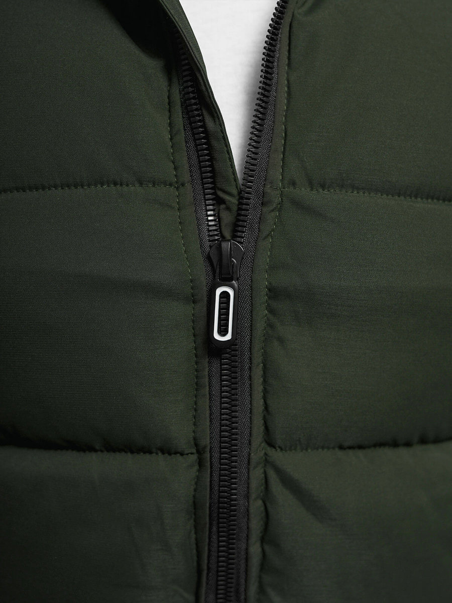 Kamizelka posiada odpinany kaptur, który dodaje jej charakteru i pozwala na dostosowanie do aktualnych warunków atmosferycznych. Modne pikowania nadają jej nowoczesny wygląd, a wysoki kołnierz typu komin chroni przed wiatrem i chłodem. Kieszenie po bokach z zamkiem zapewniają praktyczne miejsce na przechowywanie drobnych przedmiotów.