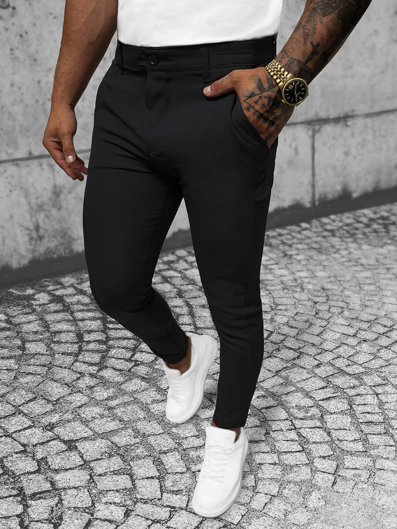 Spodnie męskie chino materiałowe OZONEE O/1000Z są idealnym wyborem na wiele różnych okazji. Doskonale sprawdzą się zarówno w codziennych stylizacjach, jak i na bardziej formalne spotkania. Możesz nosić je do koszuli i marynarki, tworząc elegancki look, lub zestawić z t-shirtem i sneakersami, nadając swojemu outfitowi casualowego charakteru. Niezależnie od tego, czy wybierasz się na spotkanie biznesowe, randkę czy spacer po mieście, te spodnie będą doskonałym uzupełnieniem Twojej garderoby.