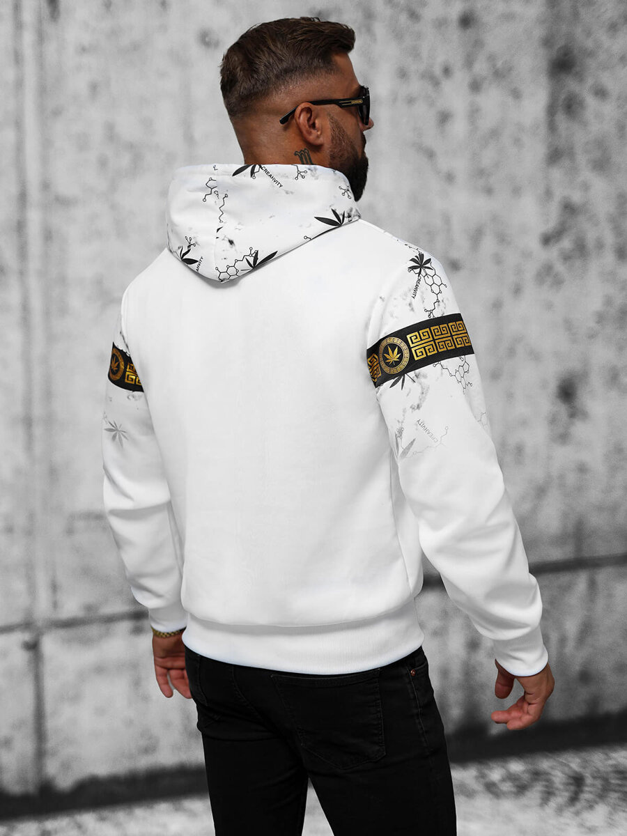 Bluza pochodzi z najnowszej kolekcji. Jest wkładana przez głowę i posiada praktyczny kaptur, który skutecznie chroni przed chłodnym wiatrem i opadami. Dół i rękawy bluzy zostały wykończone ściągaczami chroniącymi przed jej przekręcaniem się. Na przodzie znajduje się kieszeń typu kangurka. Bluzę zdobi efektowny, przyciągający wzrok nadruk. Została ona wykonana z połączenia bawełny oraz poliestru, dzięki czemu ładnie dopasowuje się do sylwetki, jest wygodna w noszeniu, przyjemna w dotyku i odporna na uszkodzenia oraz zagniecenia.