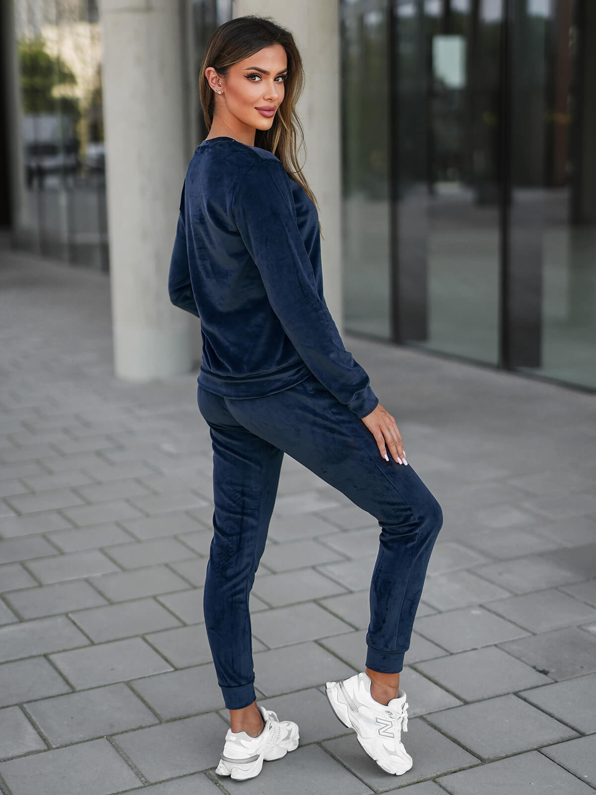 Komplet dresowy damski welurowy granatowy OZONEE O/8C1173/25