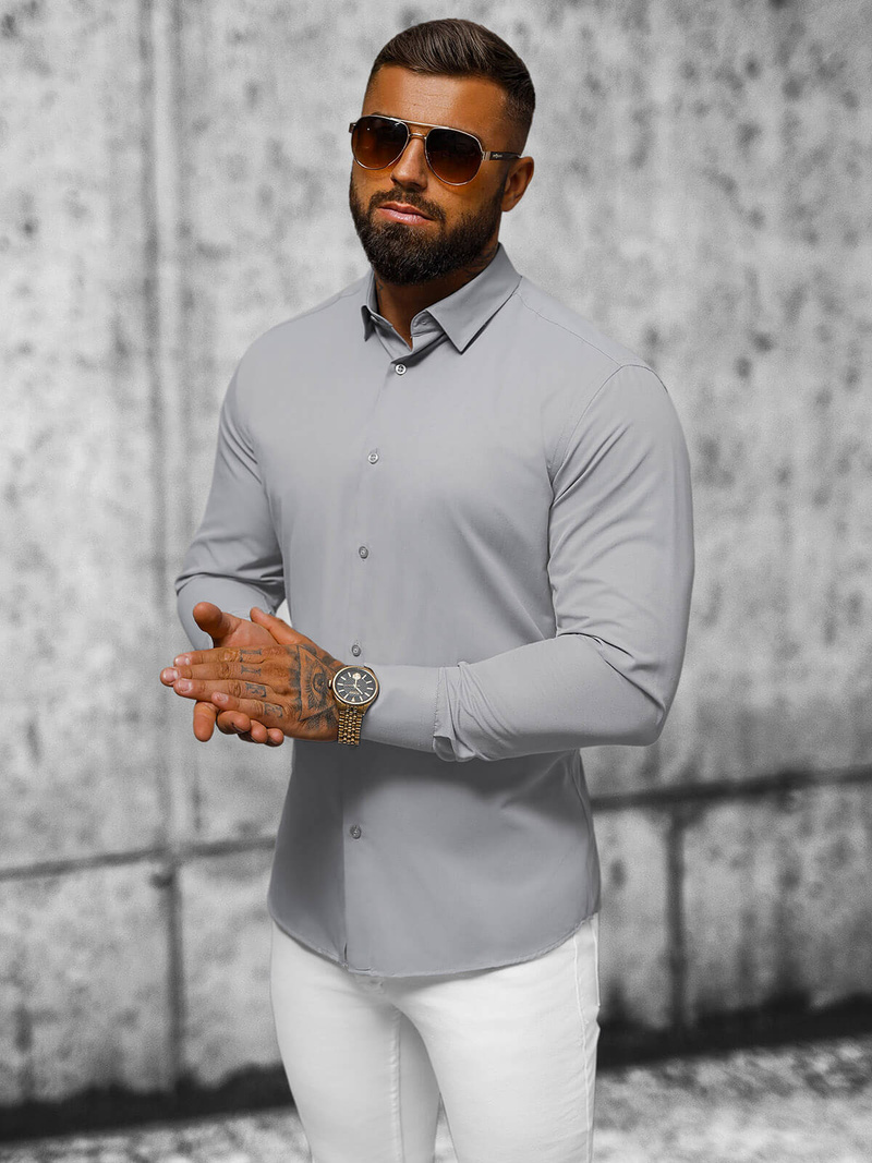 Koszula pochodzi z naszej najnowszej kolekcji. Ma długi rękaw, zapięcie na guziki oraz kołnierzyk typu kent. Koszula została wyprodukowana z wysokiej jakości bawełny z domieszką poliestru, co sprawia, że jest wygodna w noszeniu, przyjemna w dotyku, nie gniecie się, nie rozciąga i ładnie dopasowuje do sylwetki.
