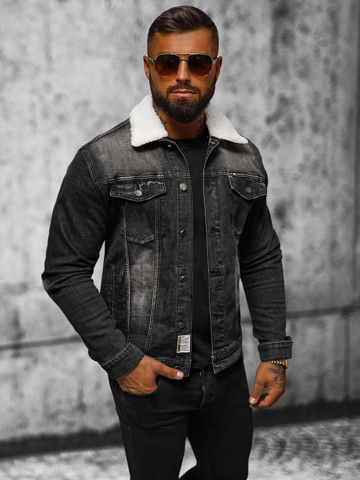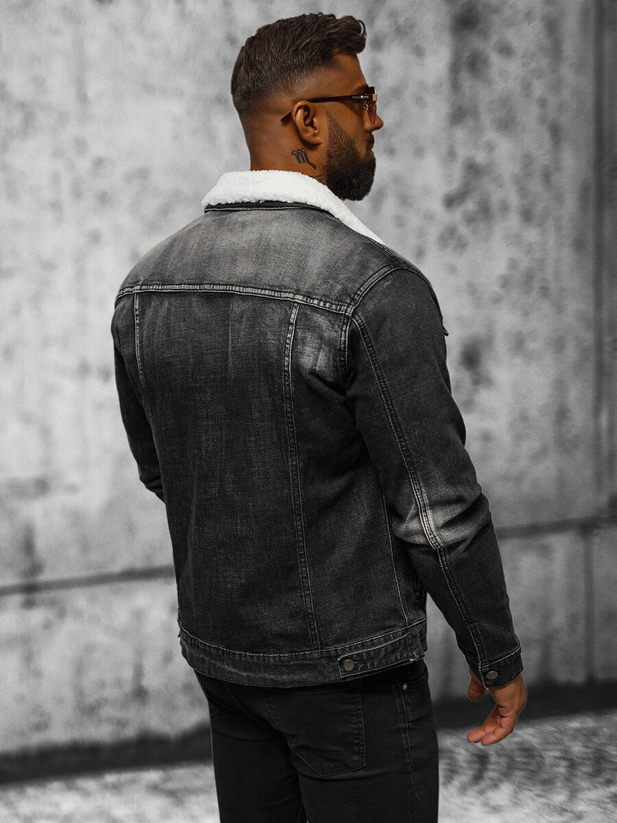 Kurtka męska jeansowa sherpa czarna OZONEE NB/MJ516NZ