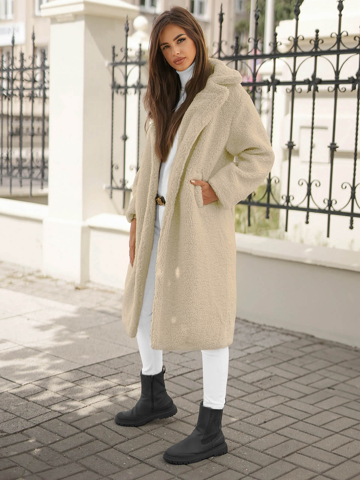 Dodaj elegancji swoim stylizacjom dzięki nowoczesnemu płaszczowi damskiemu typu polar OZONEE O/Z01!