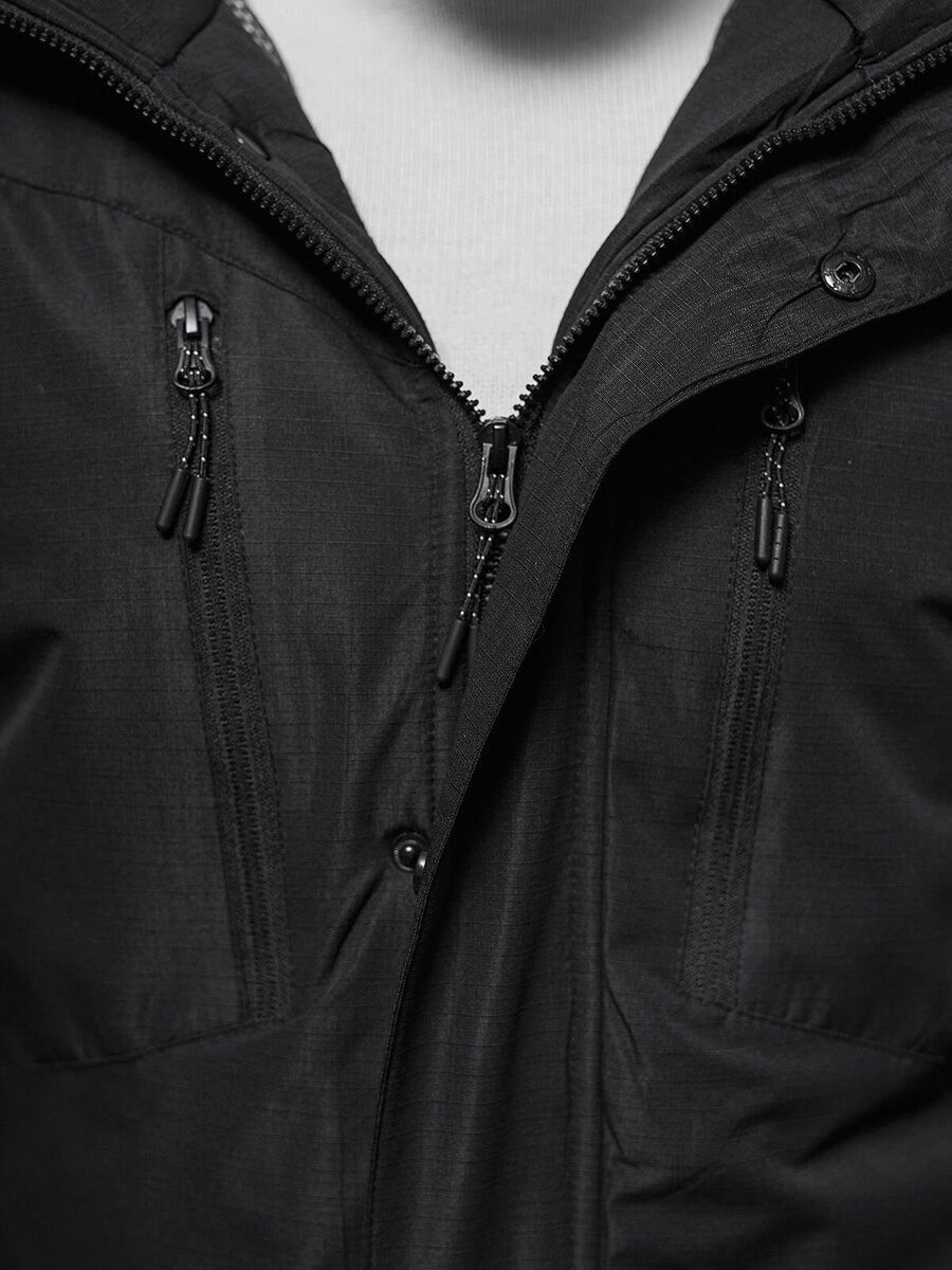 Kurtka posiada odpinany kaptur, który zapewnia dodatkową ochronę przed wiatrem i deszczem. Wysoki kołnierz typu kominiarka doskonale chroni szyję przed chłodem. Rękawy z ściągaczem zapewniają idealne dopasowanie do dłoni, a kieszenie na zamki po bokach i na rękawie umożliwiają przechowywanie drobnych przedmiotów.