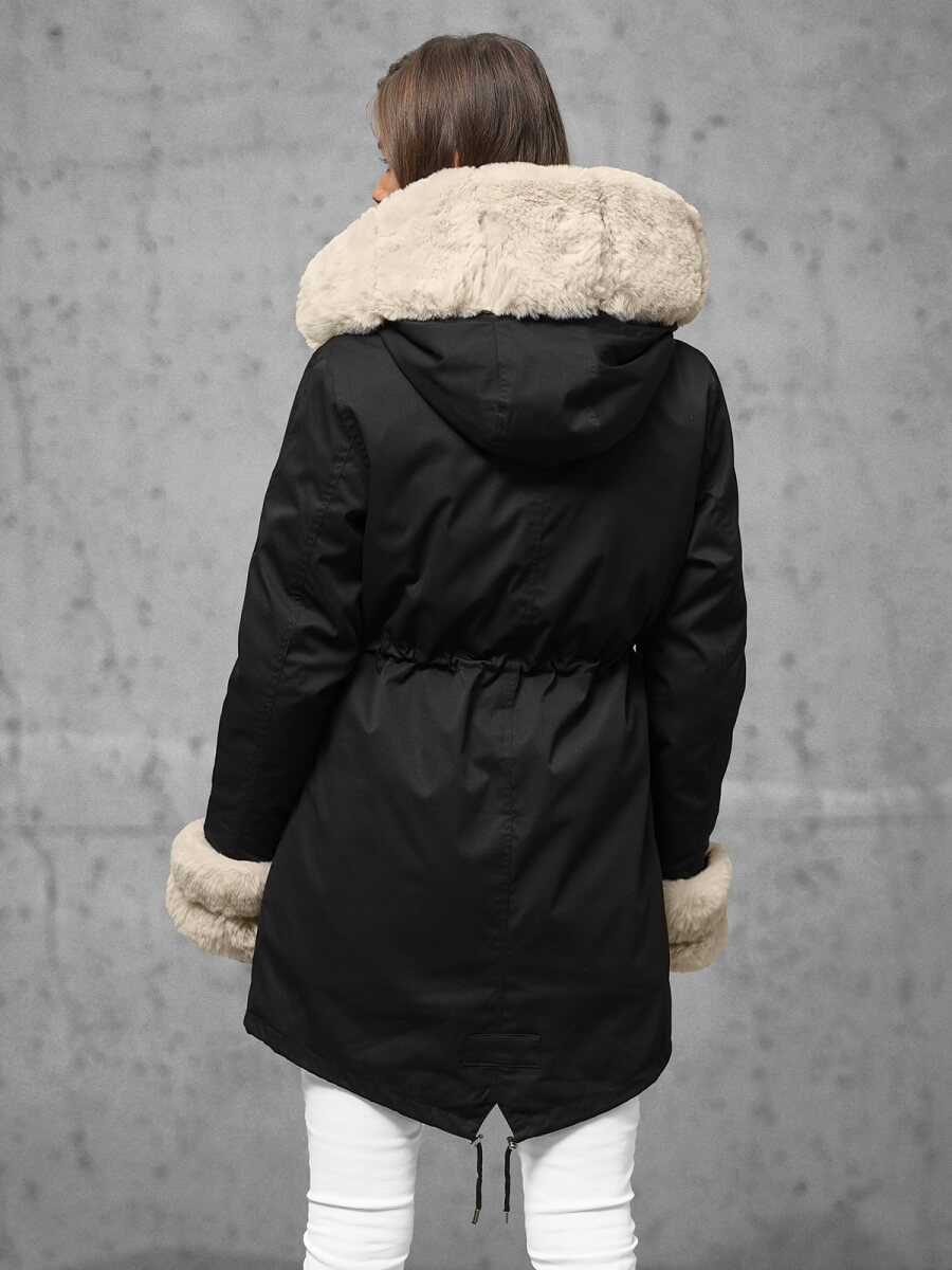 Kurtka zimowa damska długa z futerkiem czarna OZONEE JS/5M3187/392