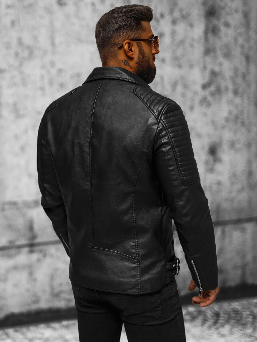 Kurtka skórzana męska ramoneska czarna OZONEE JS/11Z8026
