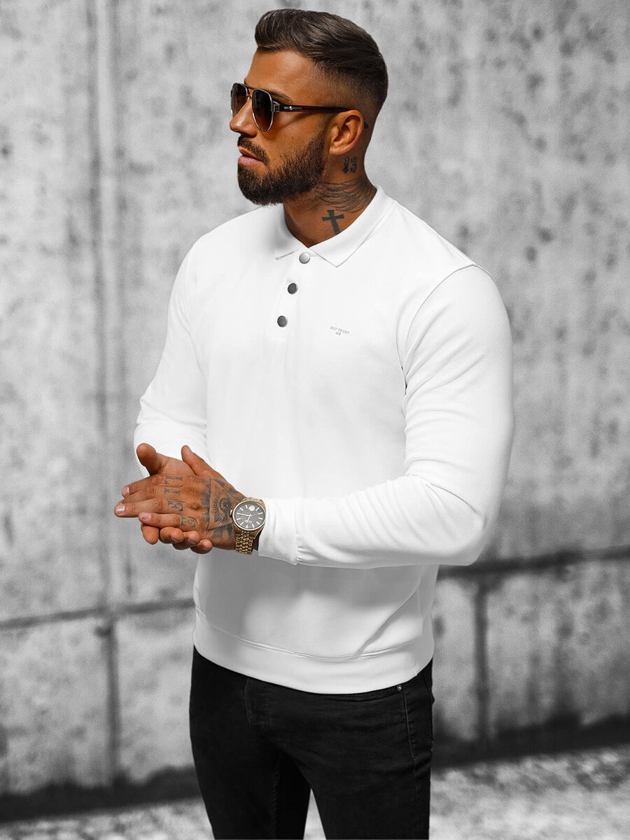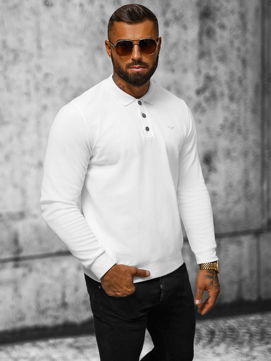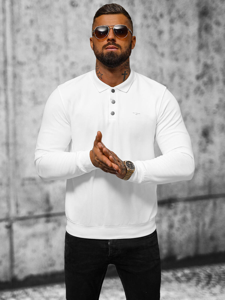 Bluza męska z kołnierzykiem biała OZONEE O/TB2203