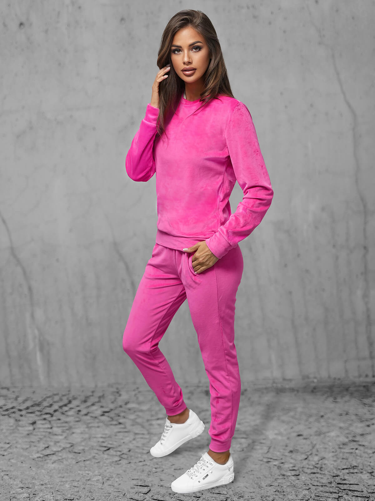 Komplet dresowy damski welurowy ciemno-różowy OZONEE O/8C1173/19