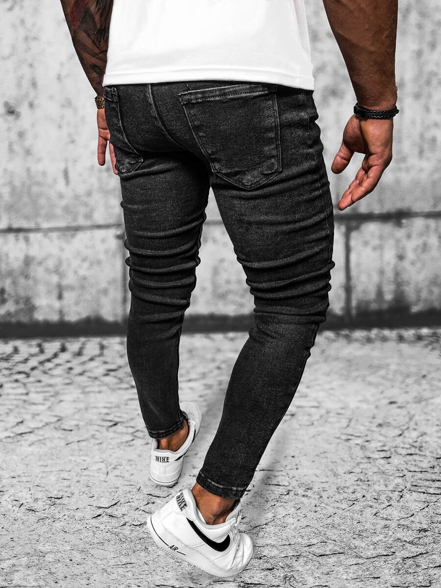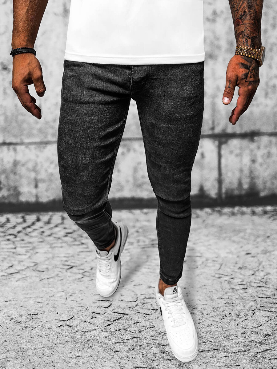 Spodnie jeansowe męskie czarne OZONEE E/6540/01 to idealny wybór dla mężczyzn, którzy cenią sobie modny wygląd i wygodę. Dzięki swojemu dopasowanemu krojowi typu slim fit / rurki, spodnie te świetnie podkreślają sylwetkę, nadając jej nowoczesny i stylowy wygląd.