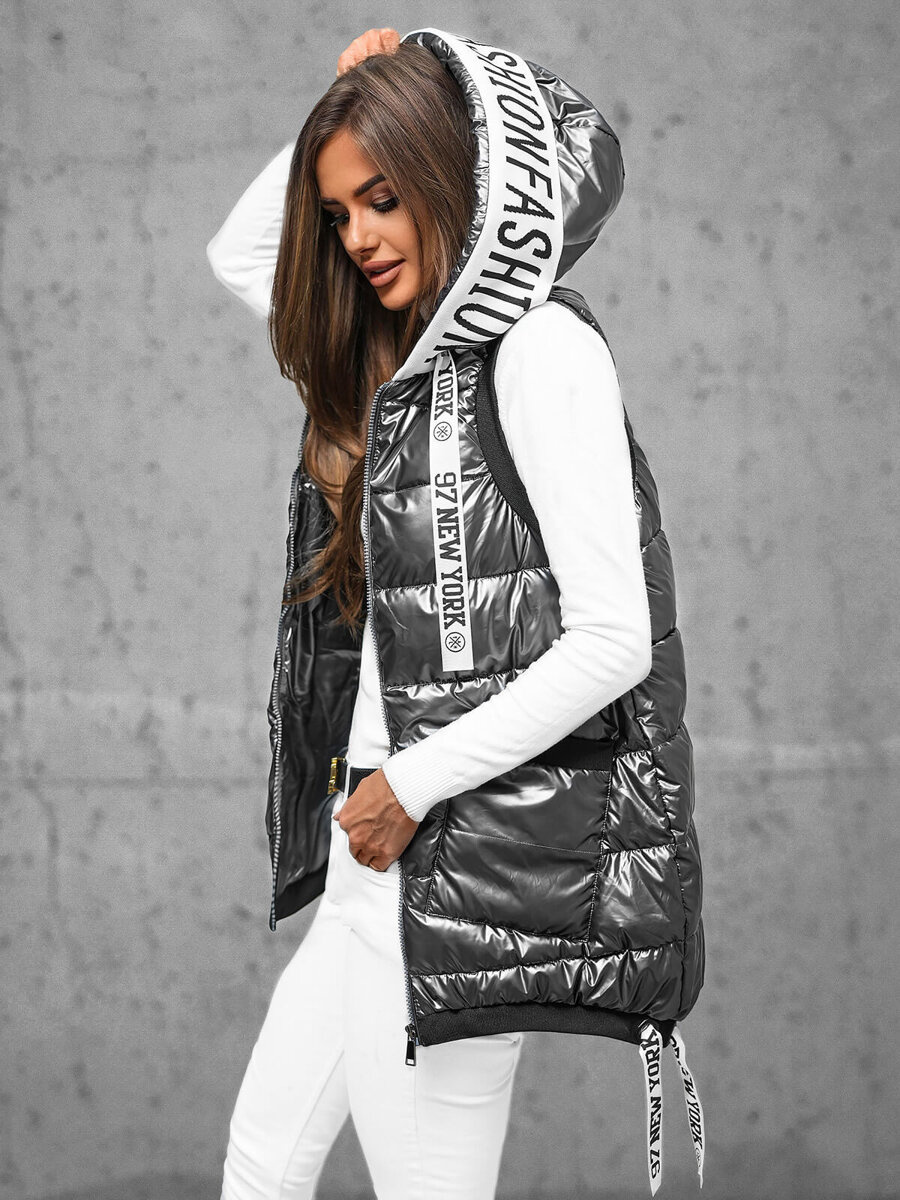 Kamizelka damska długa pikowana z kapturem grafitowa OZONEE JS/16M9115/105