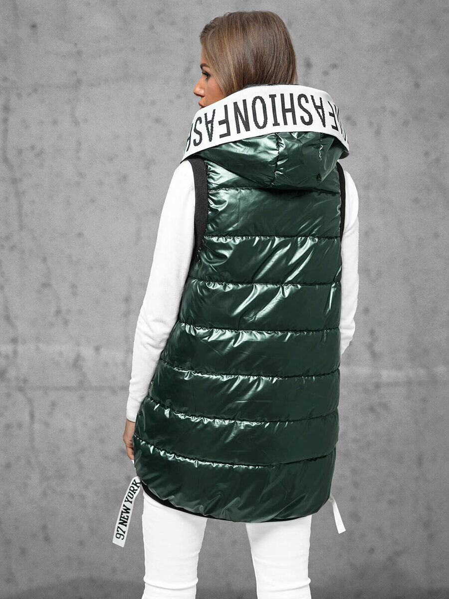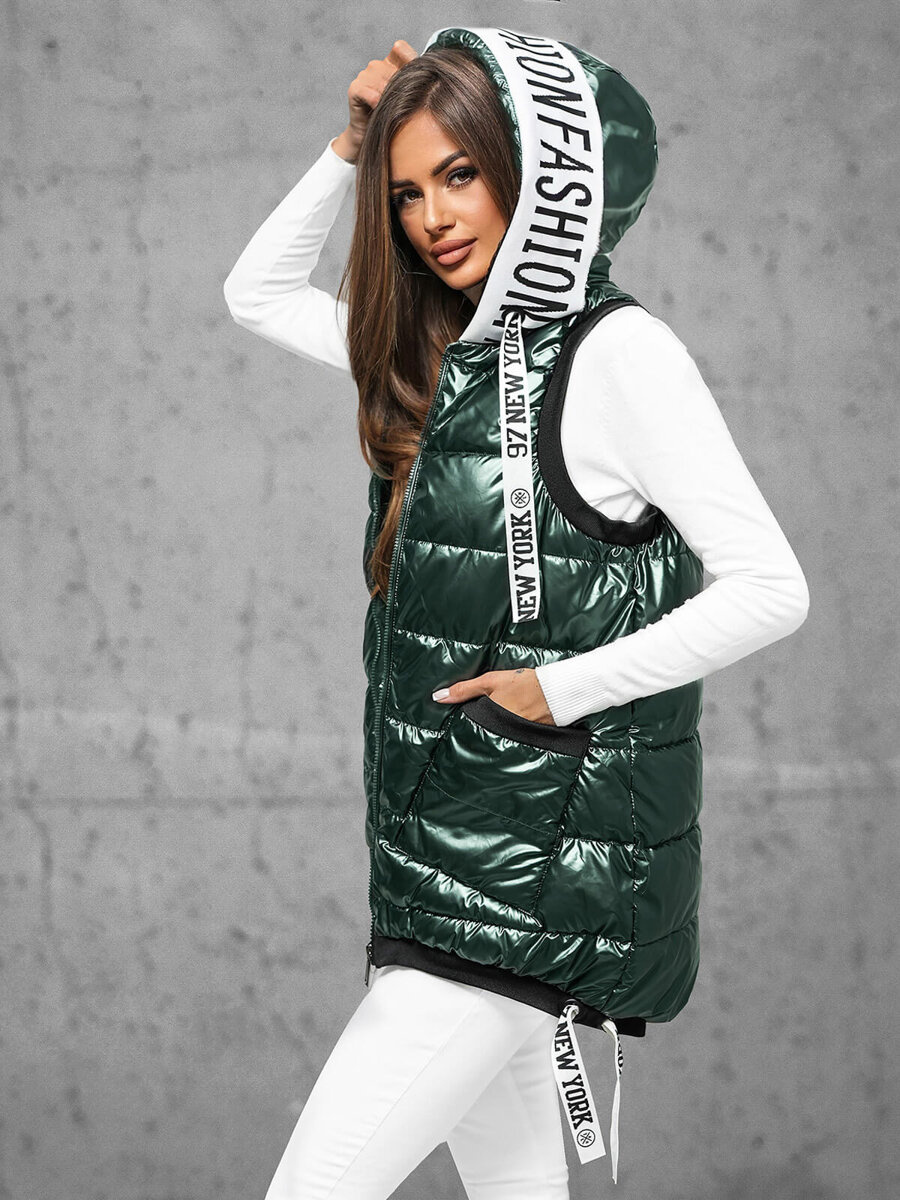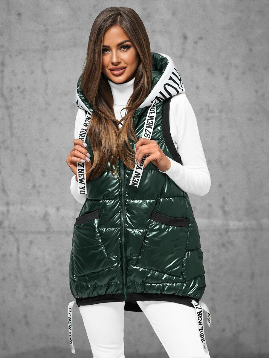 Kamizelka damska długa pikowana z kapturem zielona OZONEE JS/16M9115/136