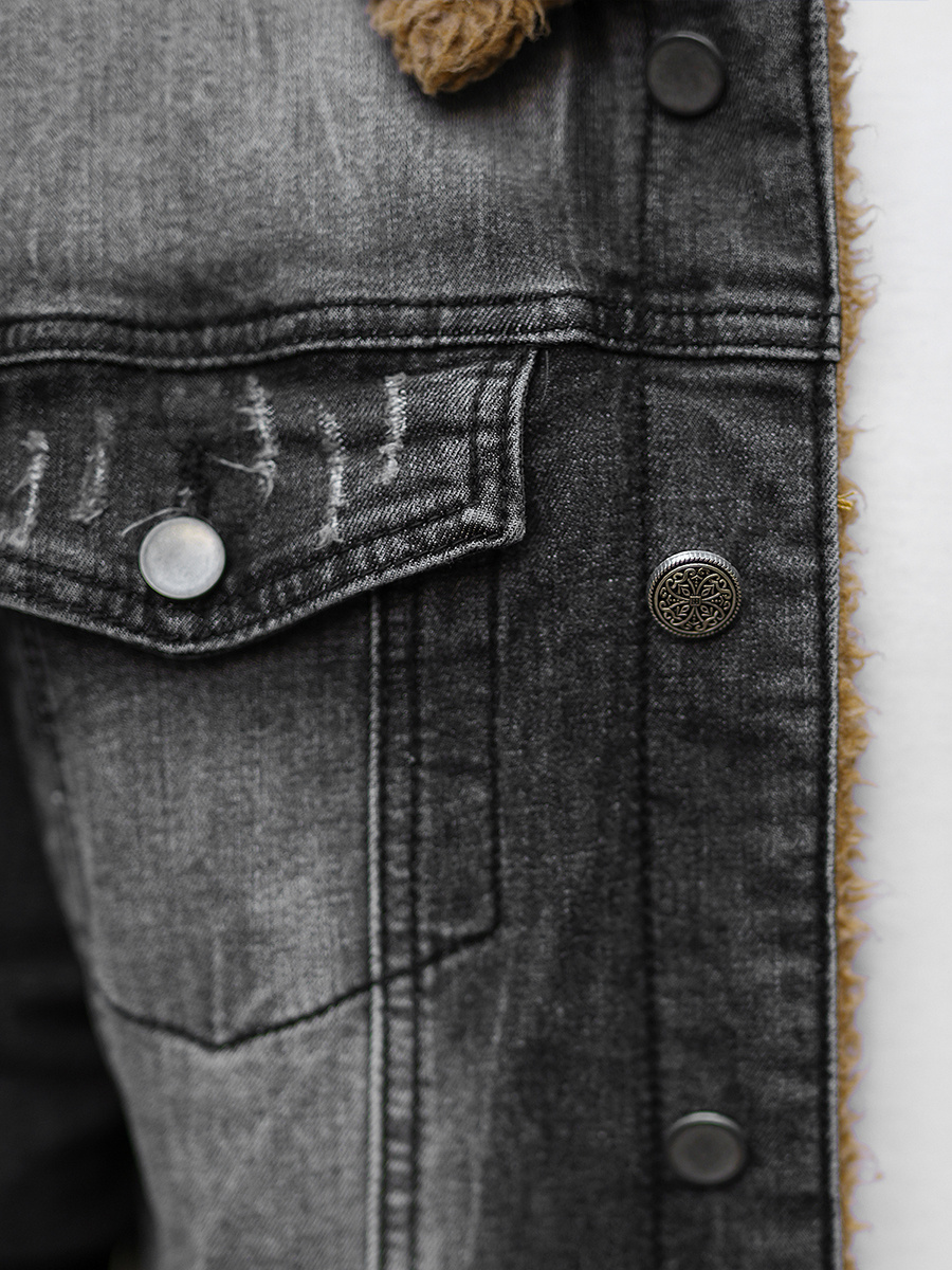 Kurtka męska jeansowa sherpa czarna OZONEE NB/MJ520NZ