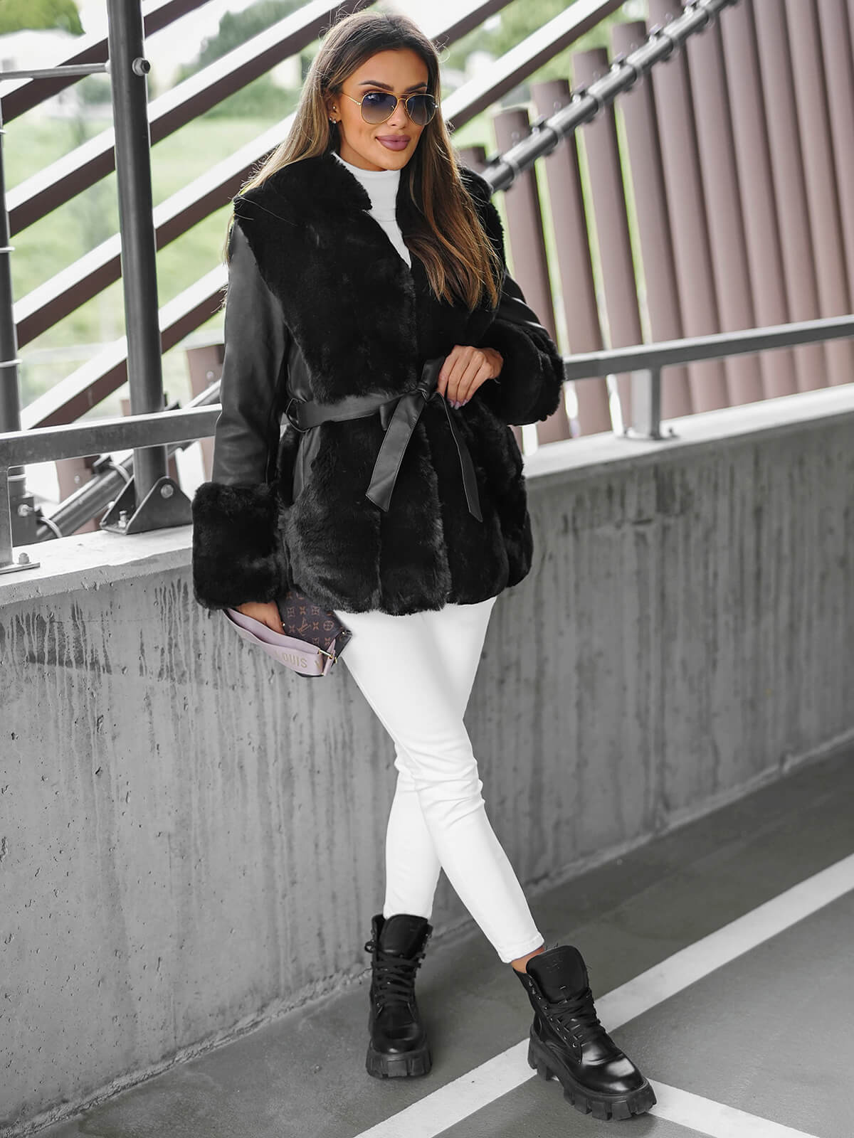Zanurz się w zimę z elegancką damską kurtką skórzaną OZONEE JS/11Z8079!