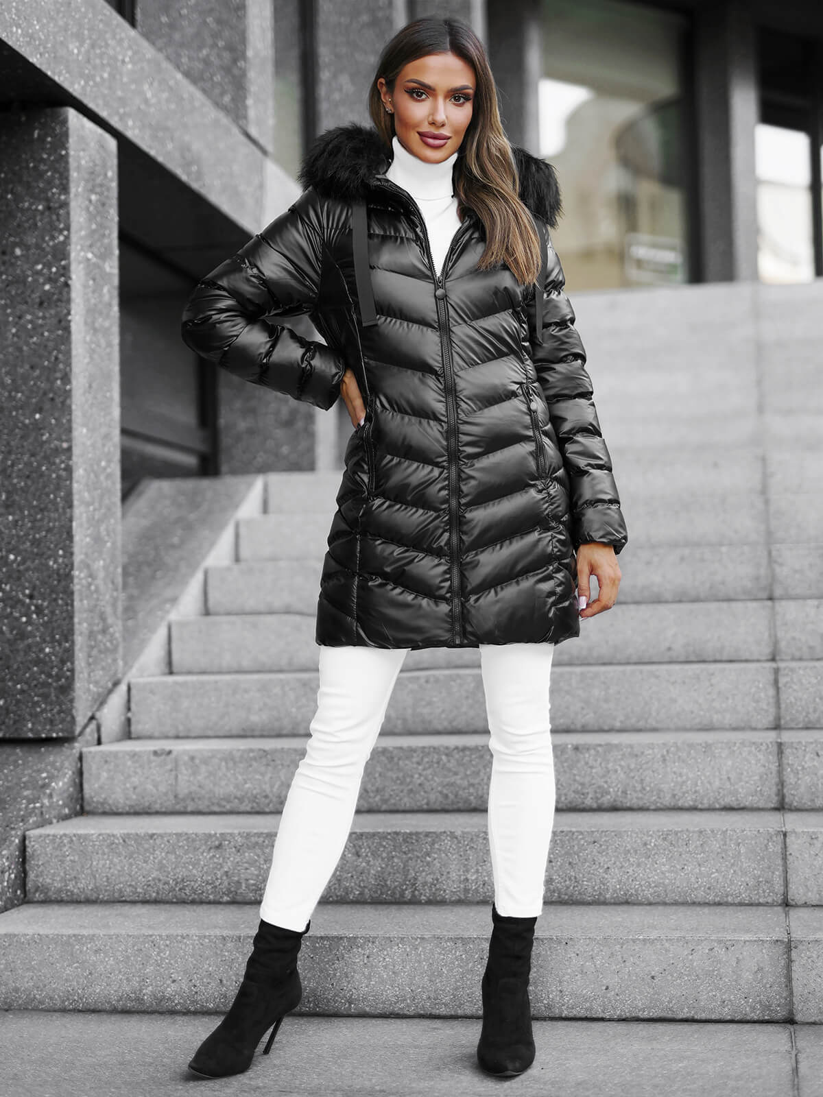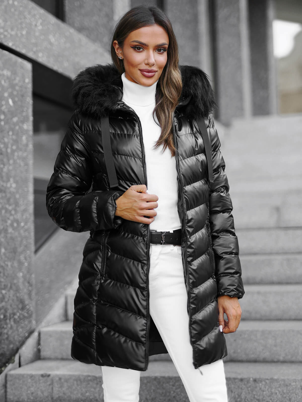Kurtka zimowa damska z futerkiem złota OZONEE JS/M778/403Z