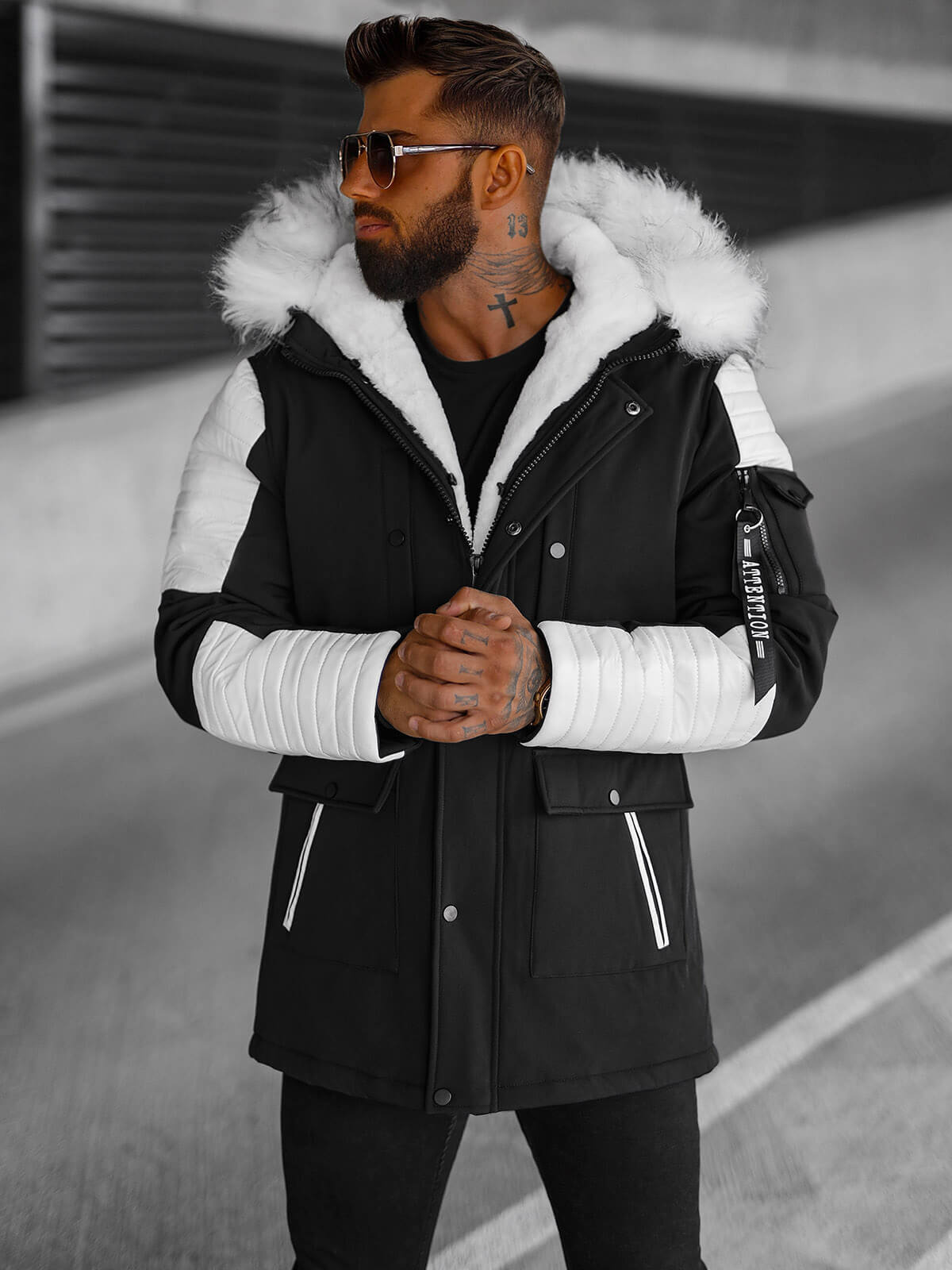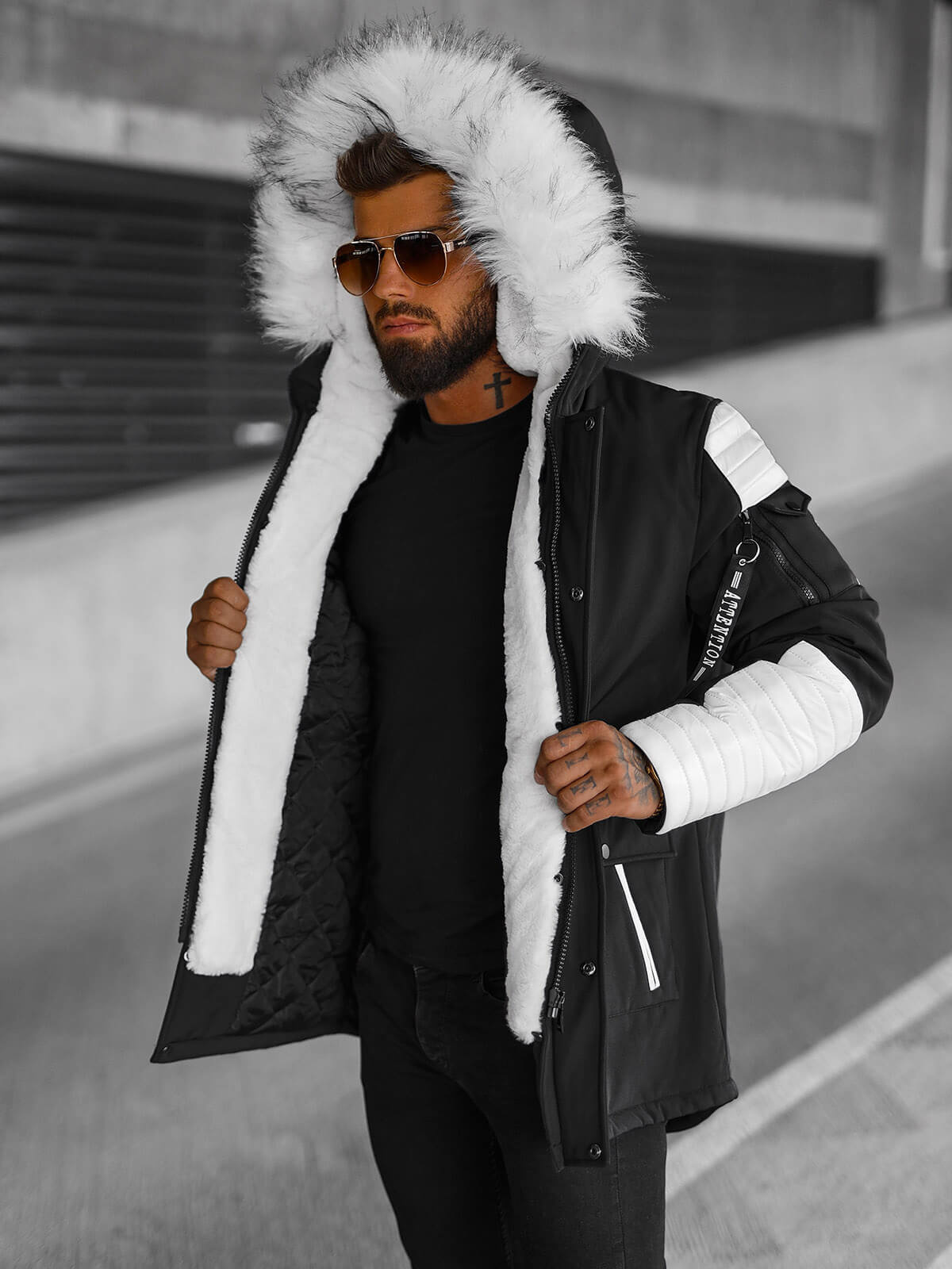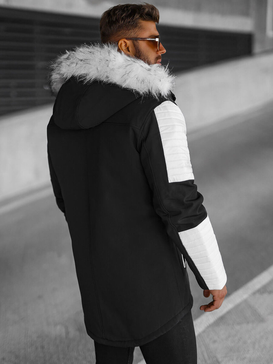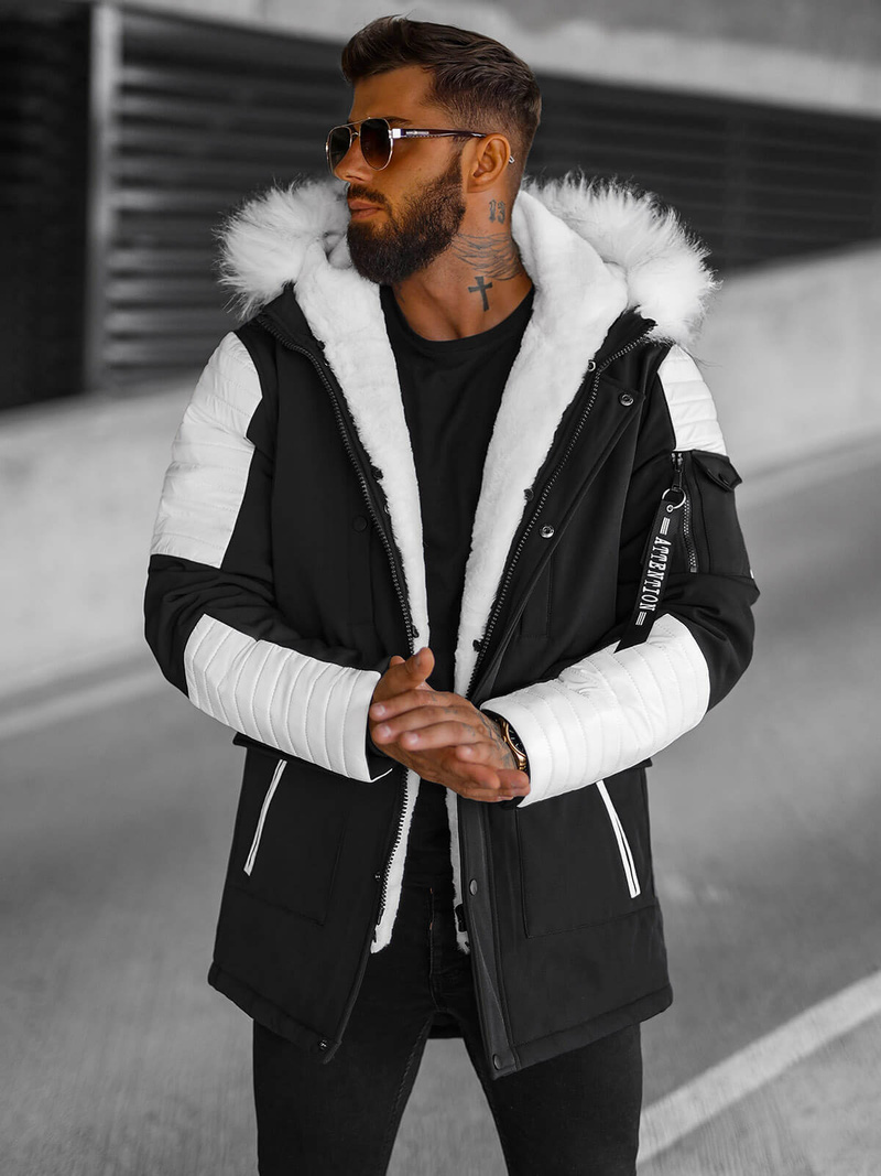 Kurtka zimowa męska parka z futerkiem czarno-biała OZONEE O/5832Z