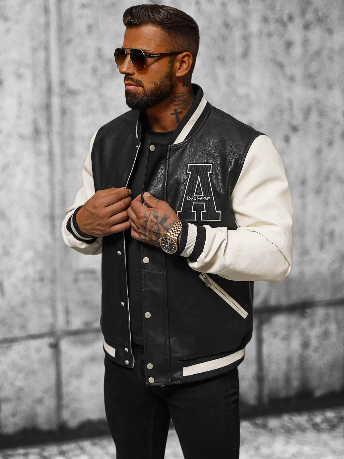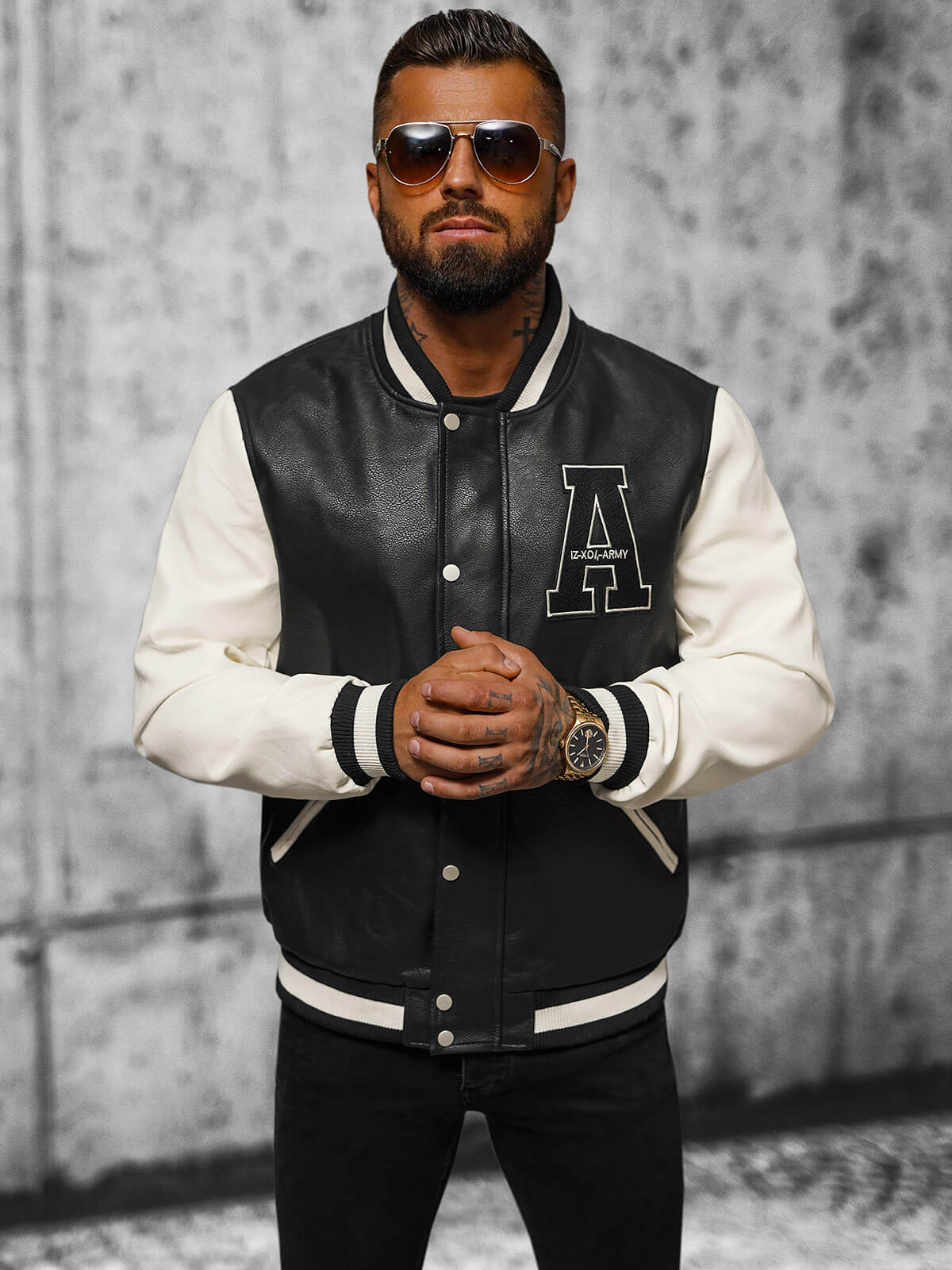 - KURTKA MĘSKA WYKONANA Z MATERIAŁU IMITUJĄCEGO SKÓRĘ