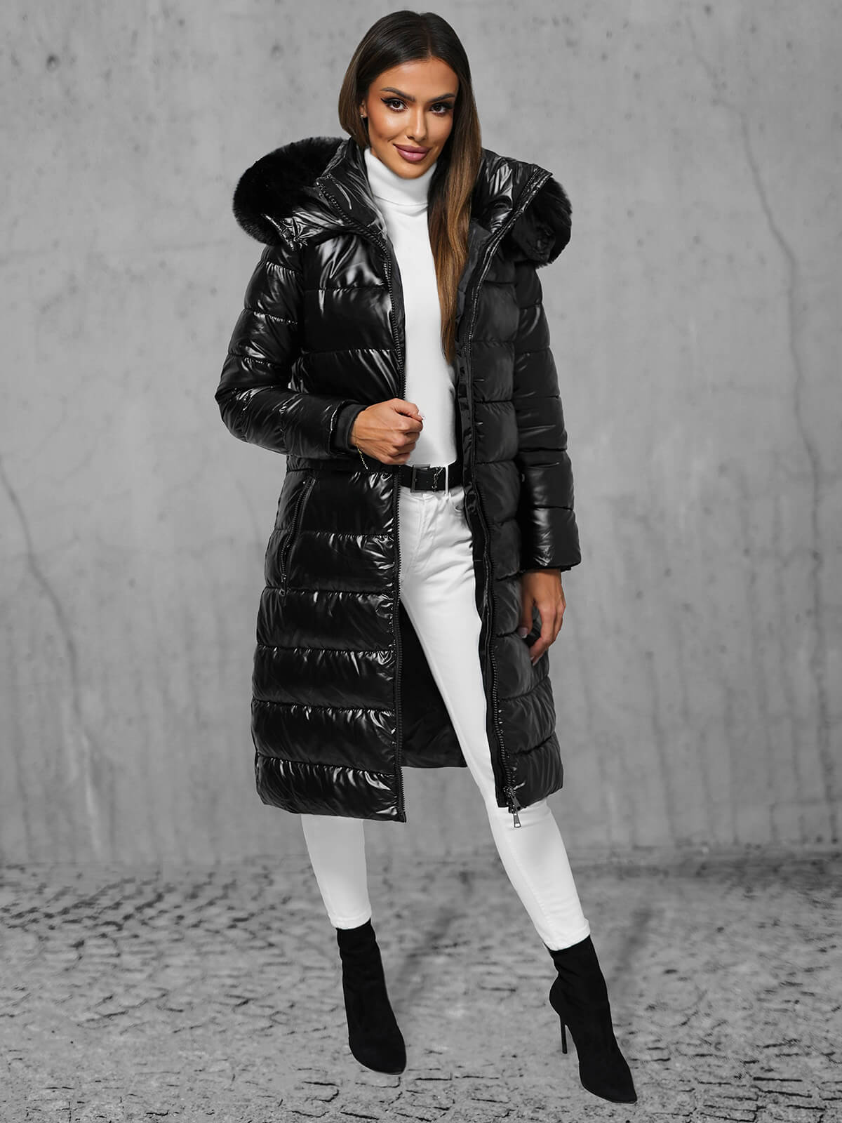 Kurtka zimowa damska długa z futerkiem czarna OZONEE JS/16M9127/392