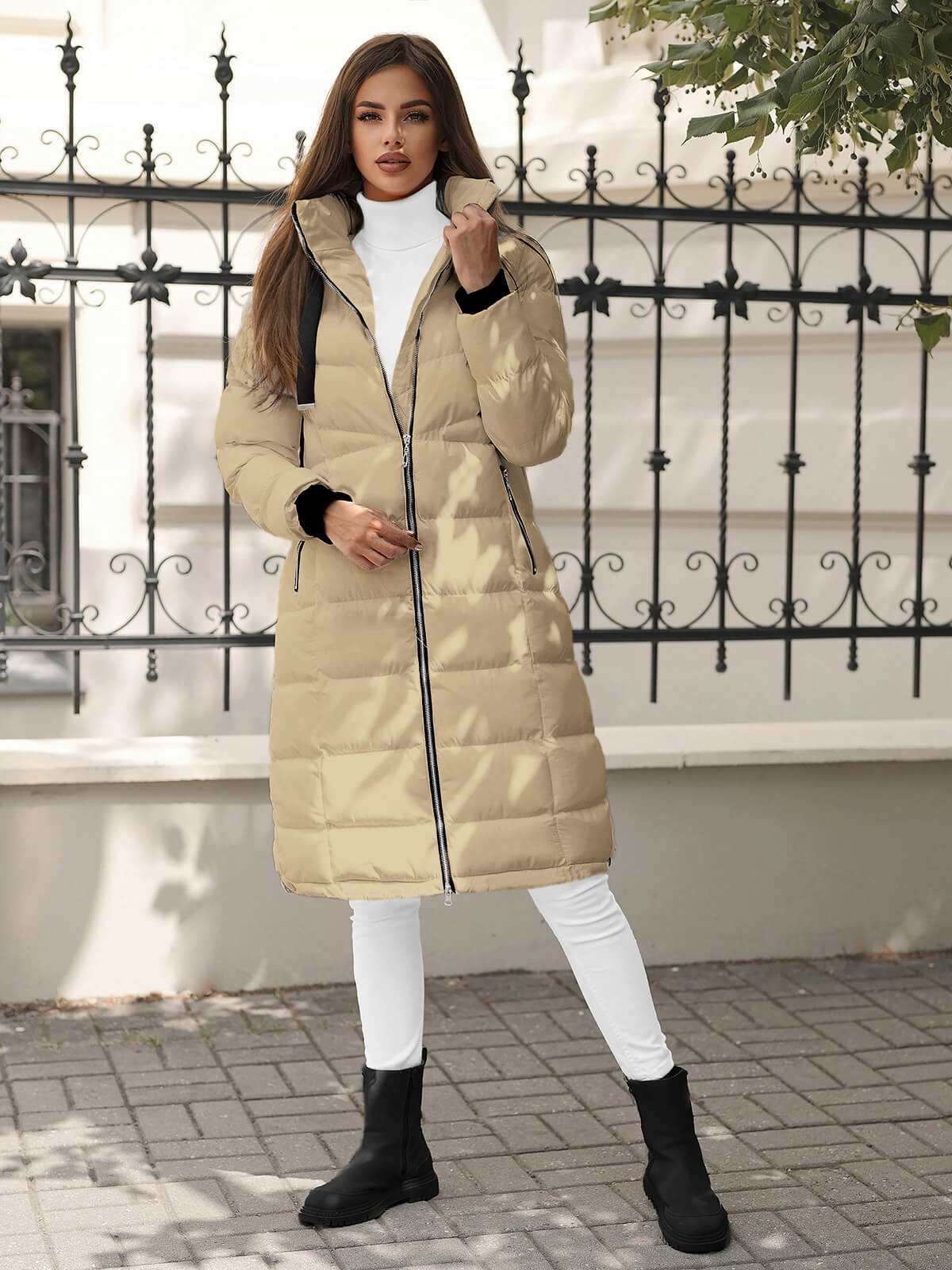 Główne cechy produktu: Posiada kaptur, Modne pikowania, Wysoki kołnierz, Kieszenie po bokach na zamek, Rękawy ze ściągaczem.