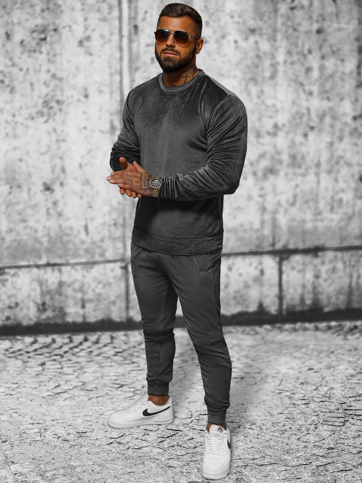 Komfort i styl w jednym - Komplet dresowy męski welurowy grafitowy OZONEE JS/8C1167/6