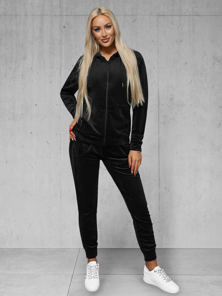 Komplet dresowy damski welurowy czarny OZONEE JS/8C1176/3