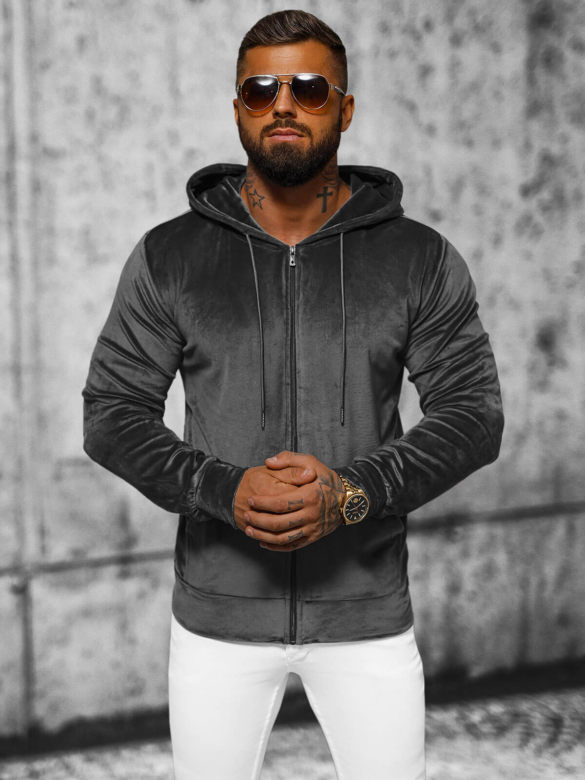 Bluza welurowa męska z kapturem grafitowa OZONEE JS/8B1168/6 - styl i komfort w jednym