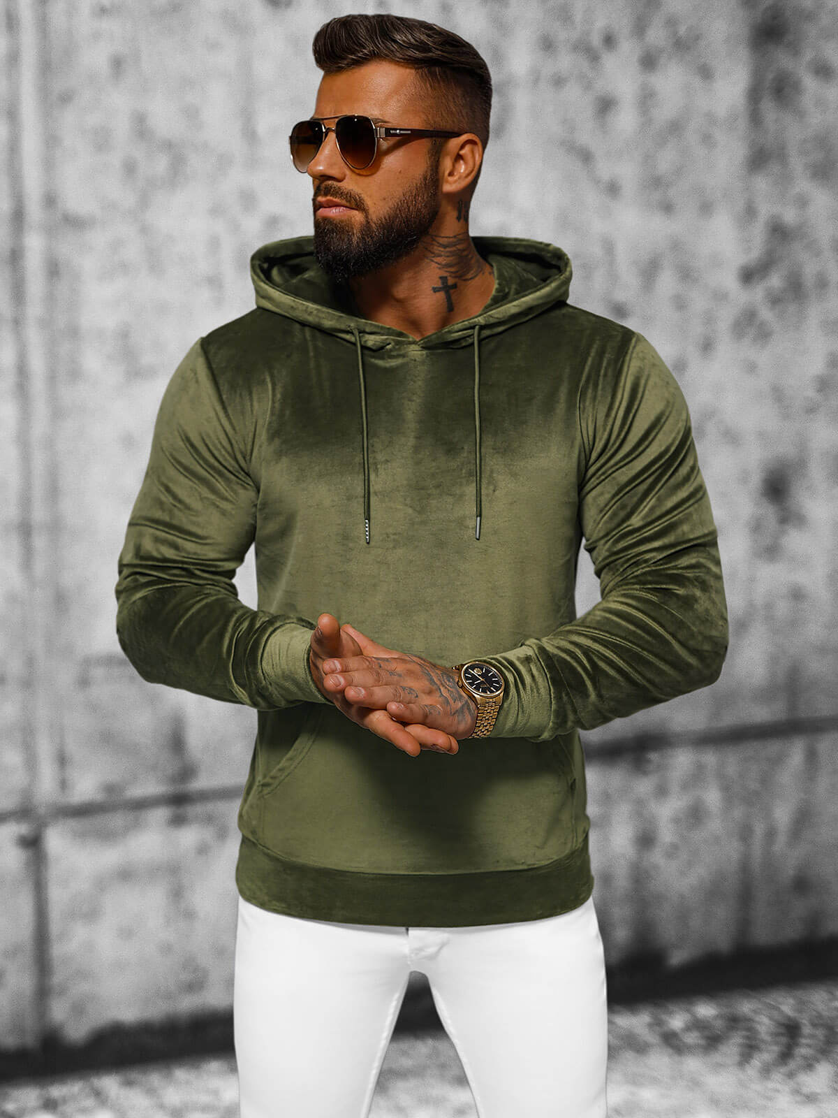 Bluza welurowa męska z kapturem khaki OZONEE JS/8B1170/29 - styl i komfort w jednym