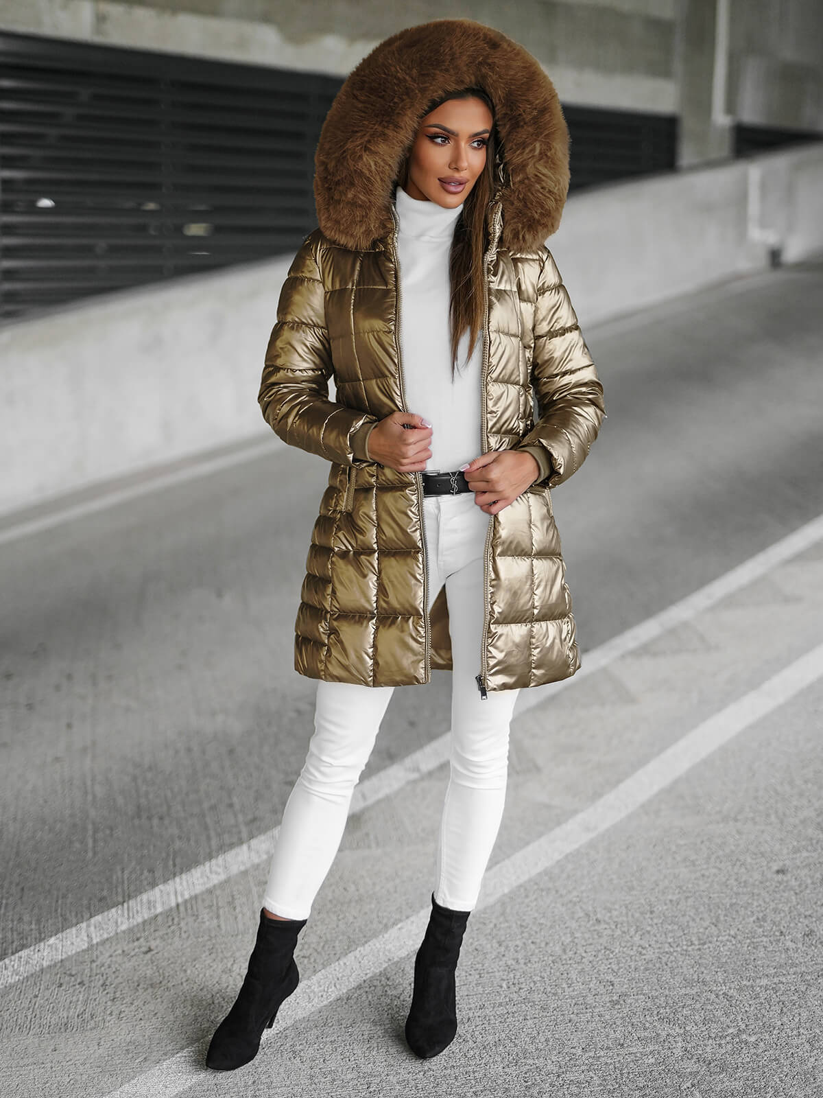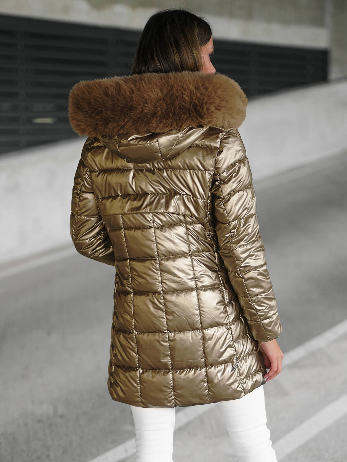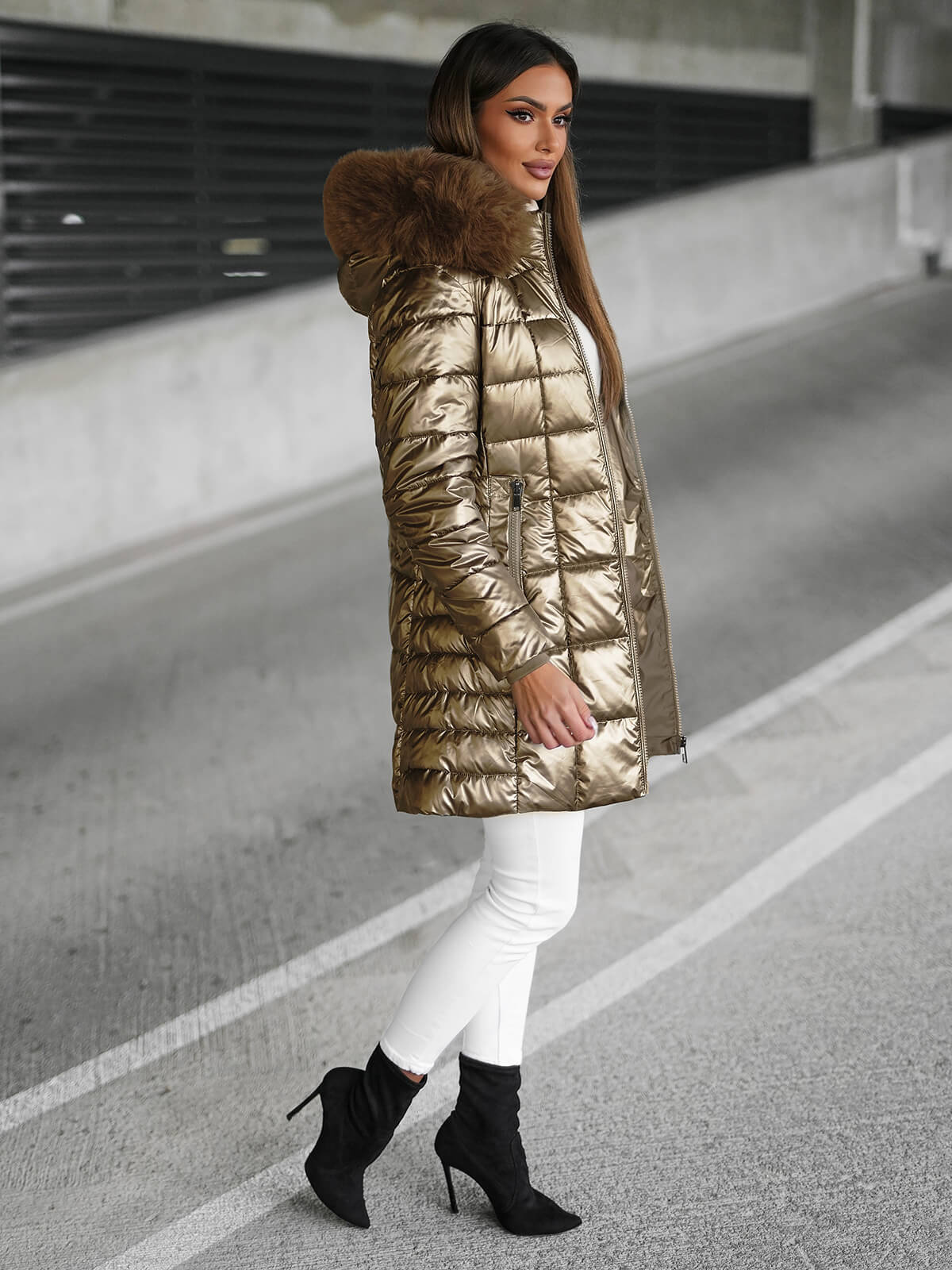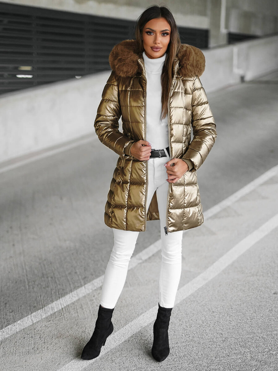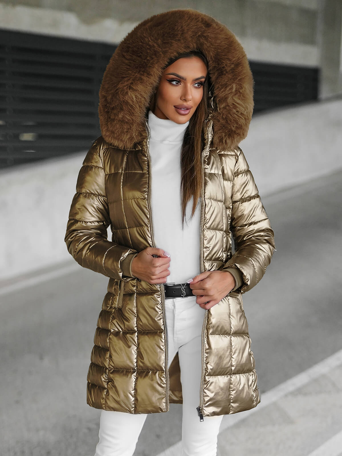 Styl i komfort w jednym - Kurtka zimowa damska długa z futerkiem złota OZONEE JS/16M9120/403Z