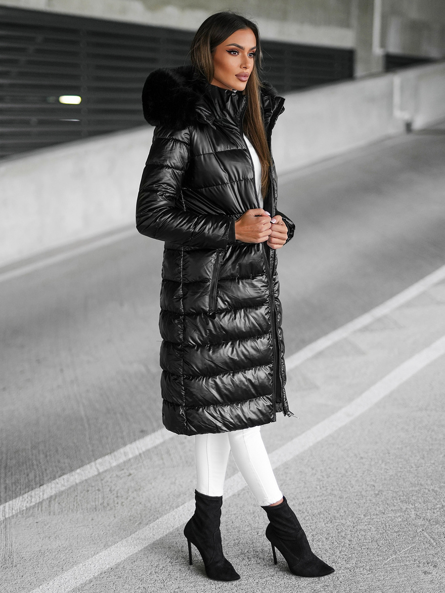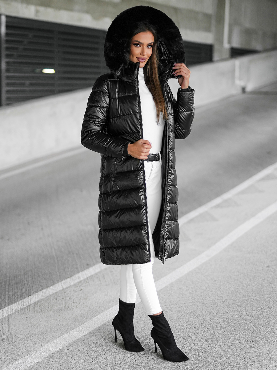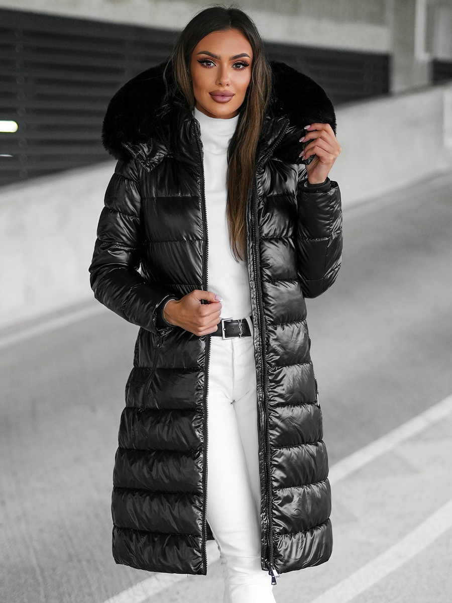 Kurtka zimowa damska długa z futerkiem czarna OZONEE JS/16M9127/392