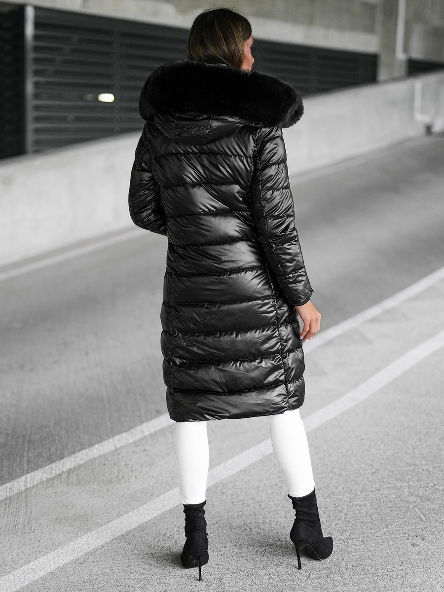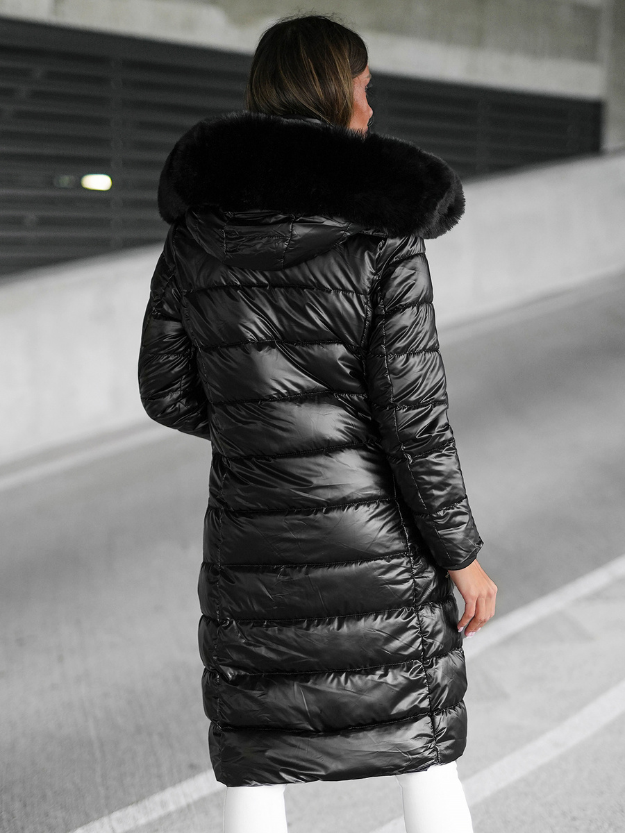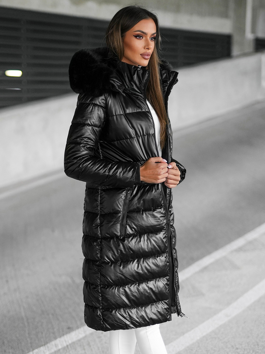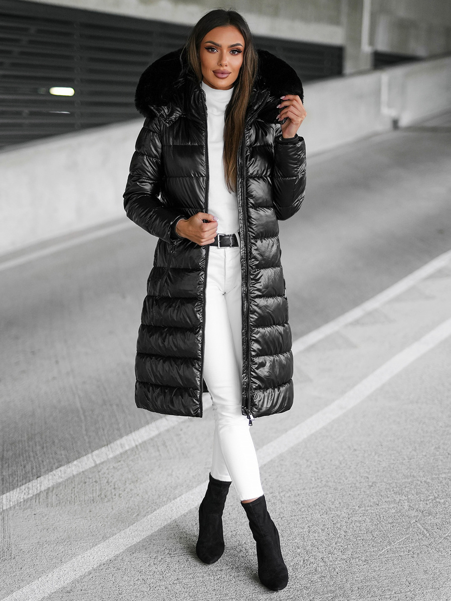 Kurtka zimowa damska długa z futerkiem czarna OZONEE JS/16M9127/392