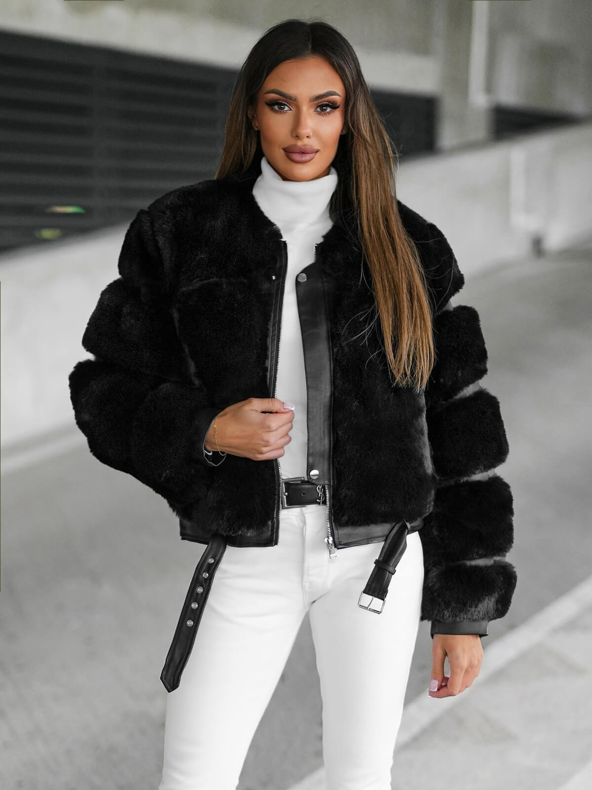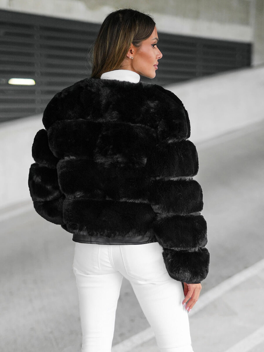 Kurtka zimowa damska z futerkiem czarna OZONEE JS/11Z8080 - elegancja spotyka funkcjonalność