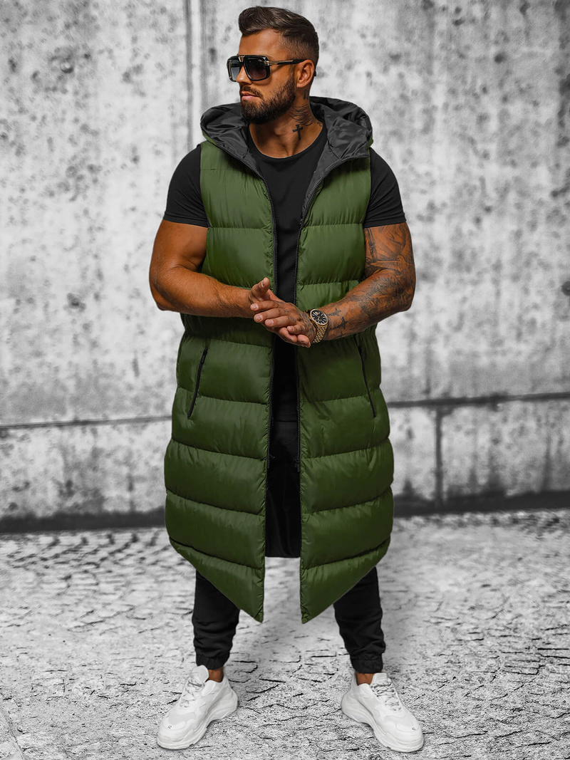Kamizelka męska długa pikowana z kapturem zielona OZONEE O/M3203Z