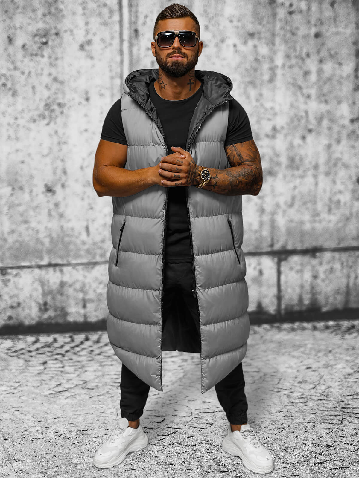 Kamizelka męska długa pikowana z kapturem szara OZONEE O/M3203Z