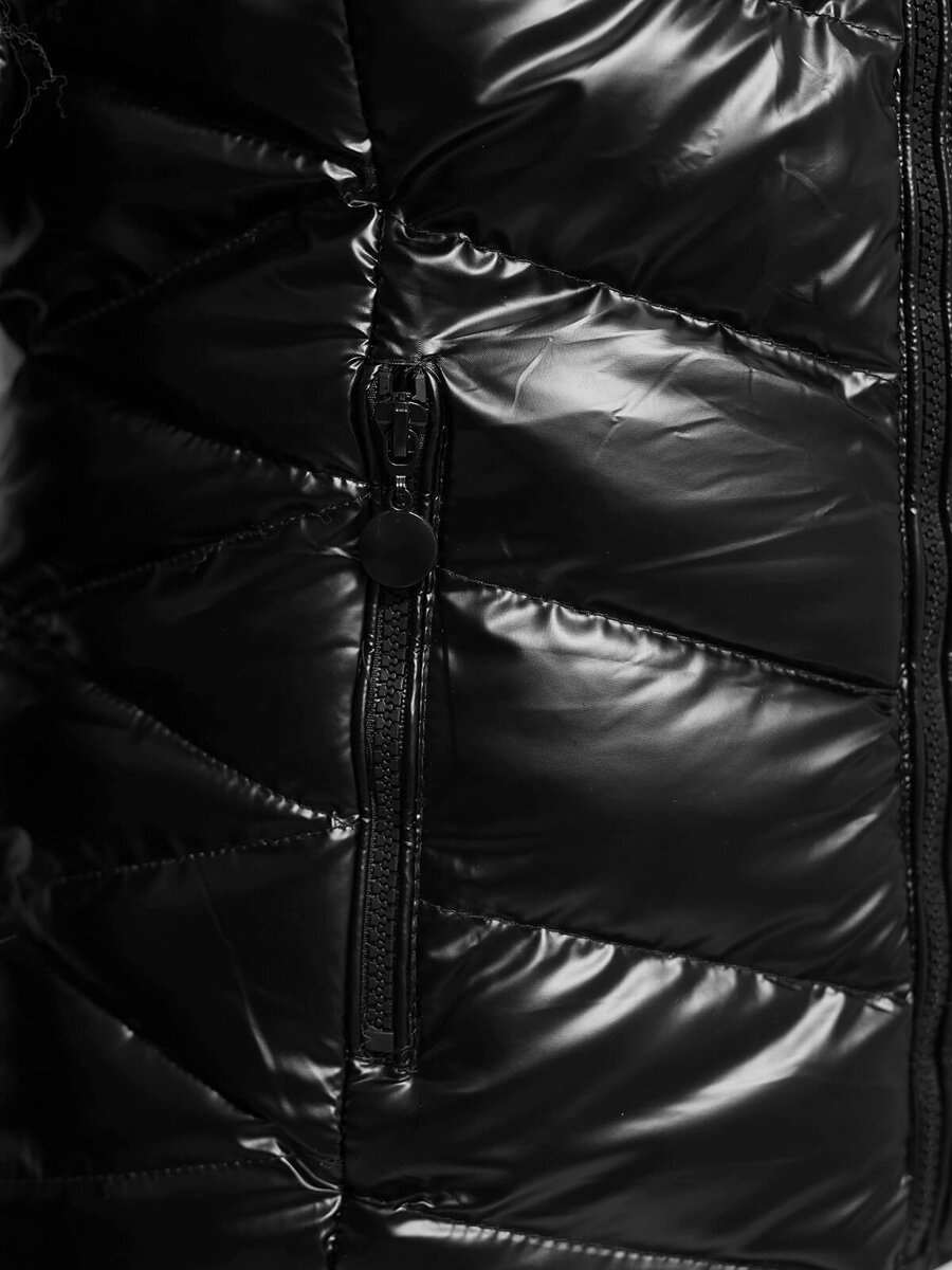 Stylowa i praktyczna Kurtka zimowa damska pikowana z futerkiem czarna OZONEE JS/5M3138/392A