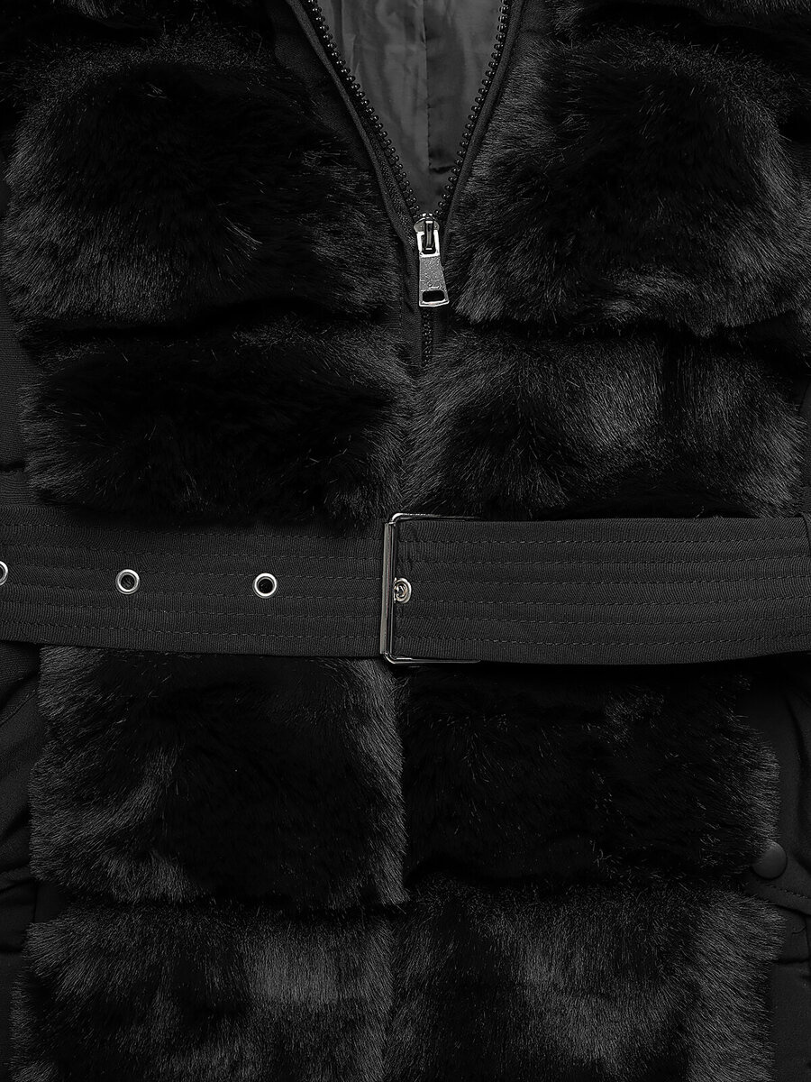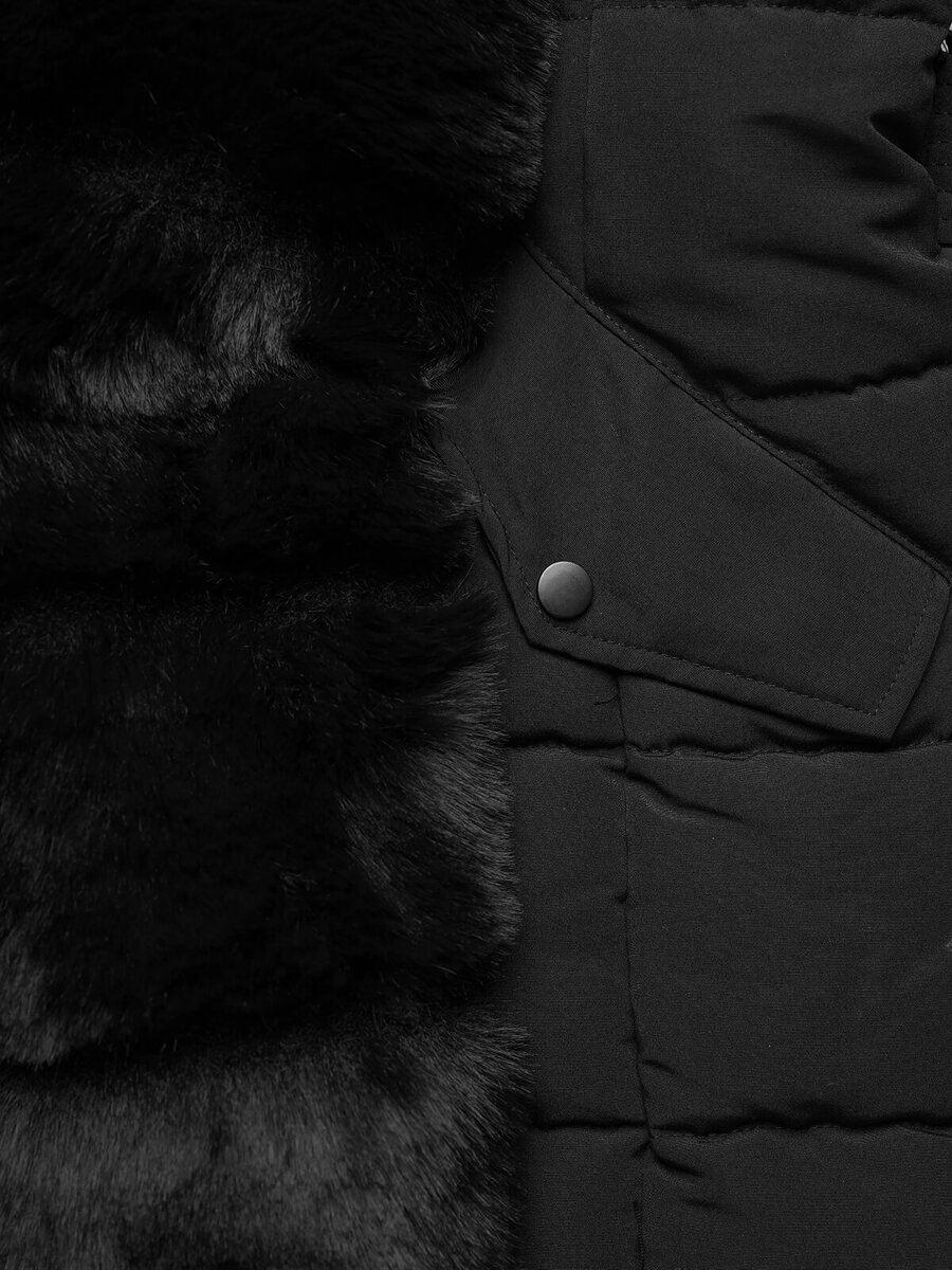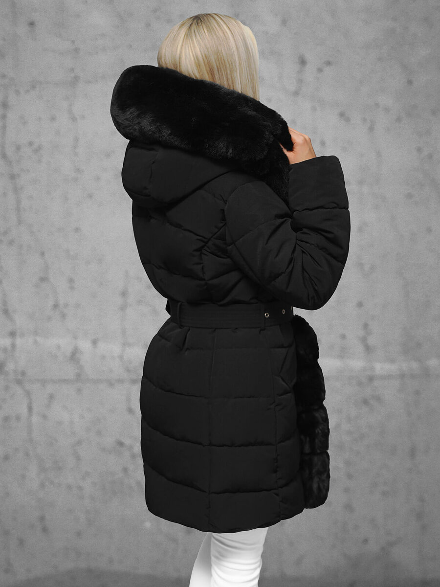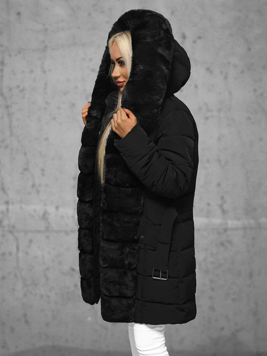 Stylowa i praktyczna kurtka zimowa damska długa z futerkiem czarna OZONEE JS/11Z8096